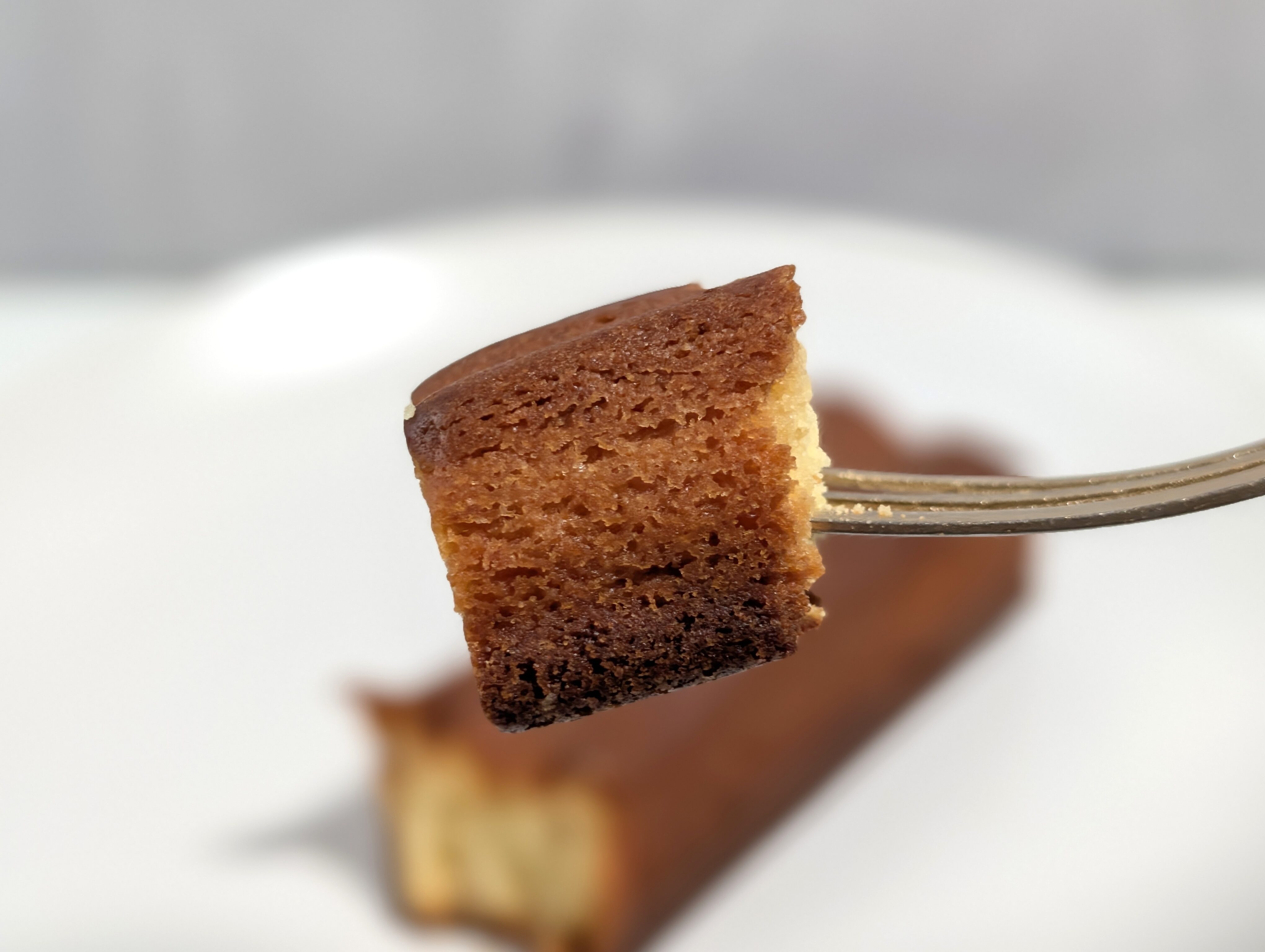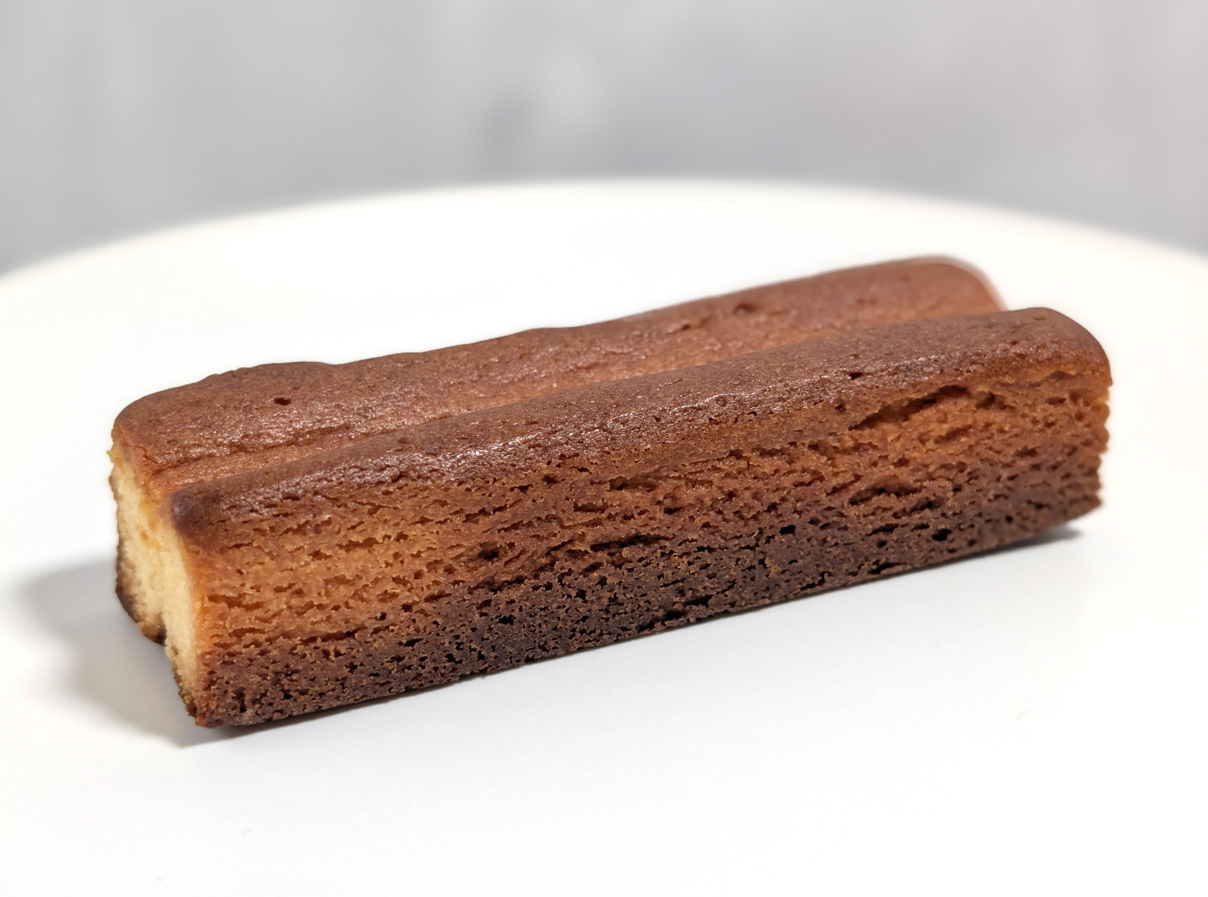 食感は焼き菓子に近いふわりとした舌触りではあるものの、もう少し「ねっとり」、もしくは「もそもそ」とした感じがあります。一般的な焼き菓子に比べると劣る食感といわざるを得ませんが、栄養補助食品として、これ1本でそれなりに満足できるようあえてこの食感なのでしょう。