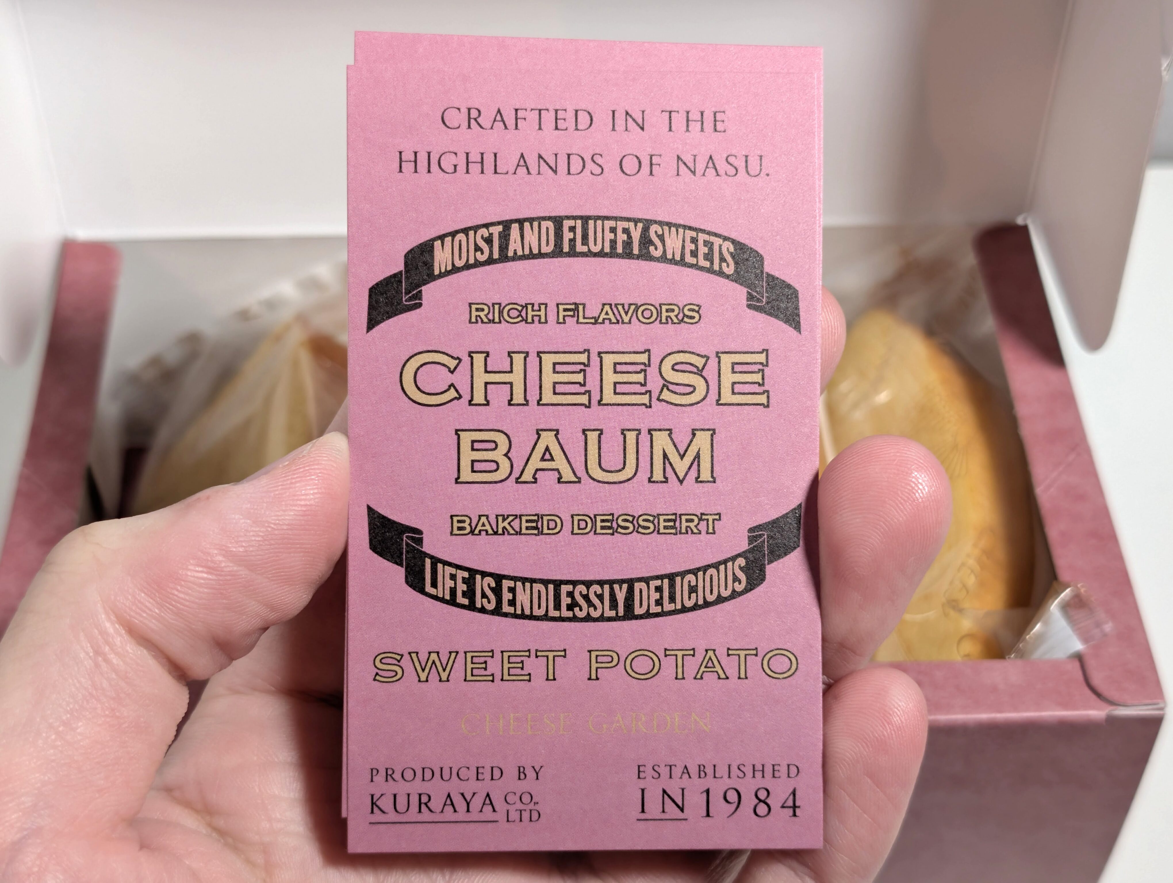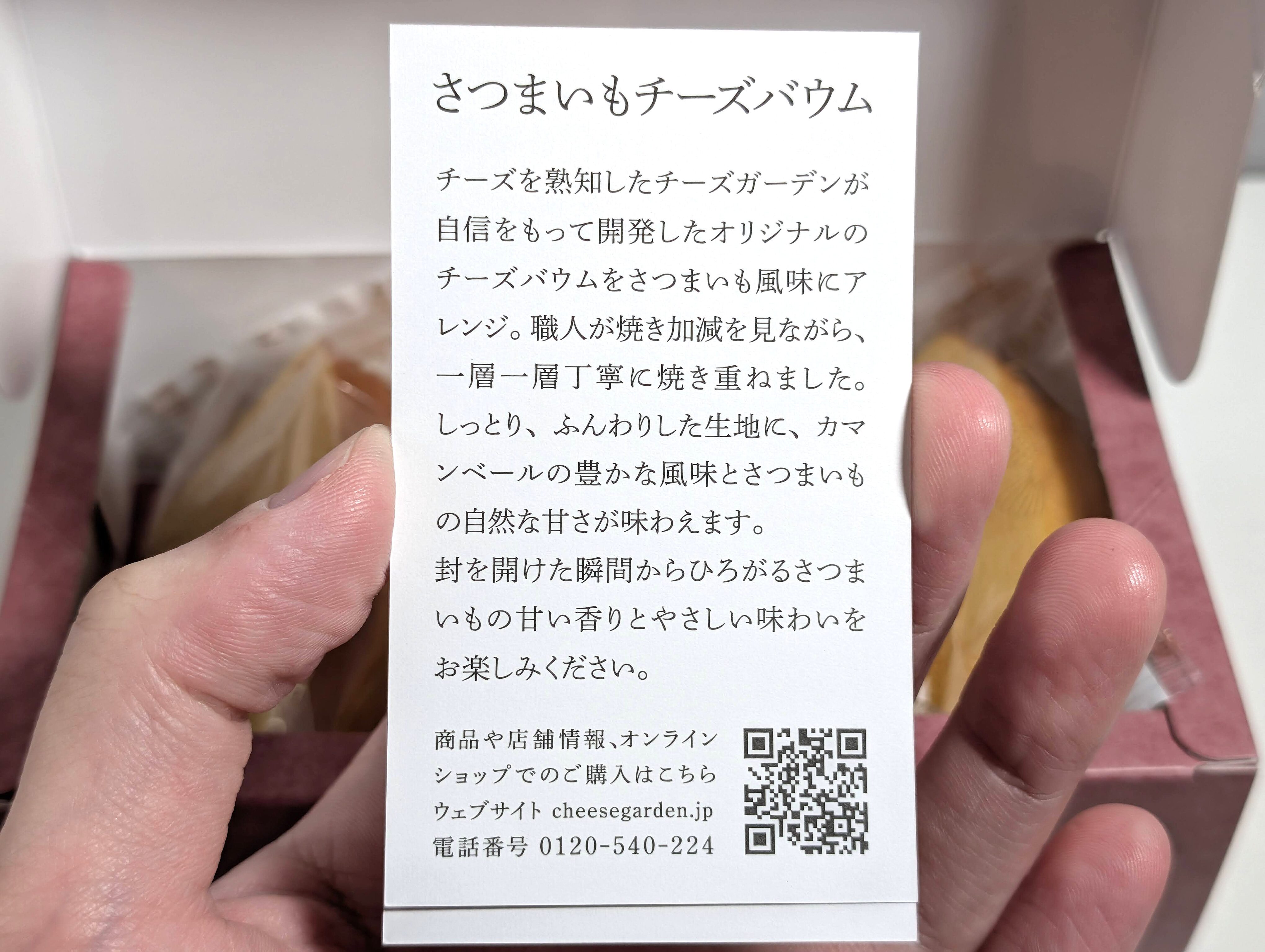 チーズを合わせるバウムクーヘンは、他店舗でも時々見かけますが、今回のように「チーズ+さつまいも」は、筆者はみたことがありません。