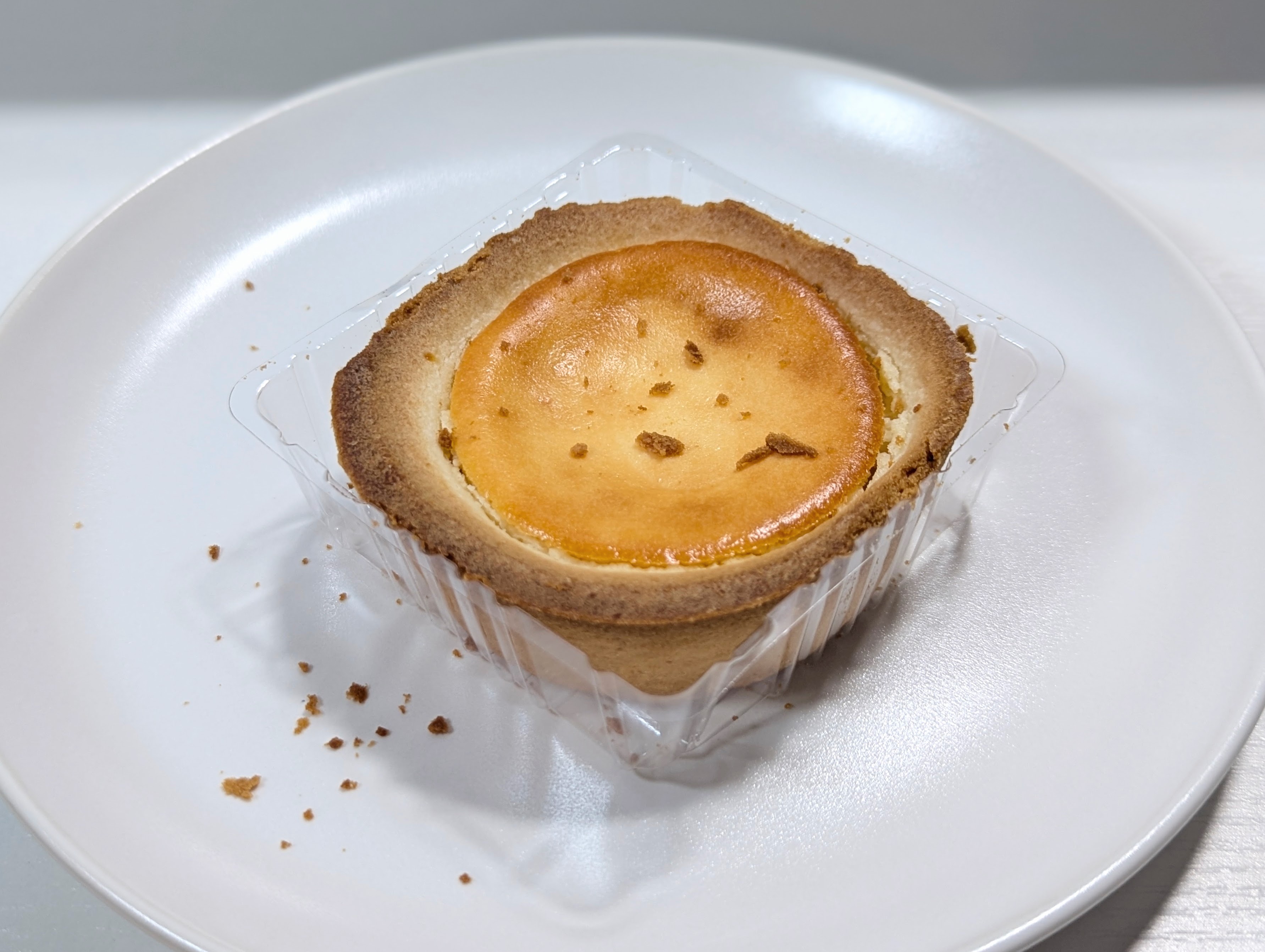 そして味ですが、まずタルト生地はわりとあっさりした、ビスケットに近い味わいです。チーズケーキ生地はミルキーな風味に加えて、チーズのほっくりするような風味があるでしょうか。200円以下の安価なチーズタルトでありながら、乳製品の風味とチーズの味をしっかり感じられます。