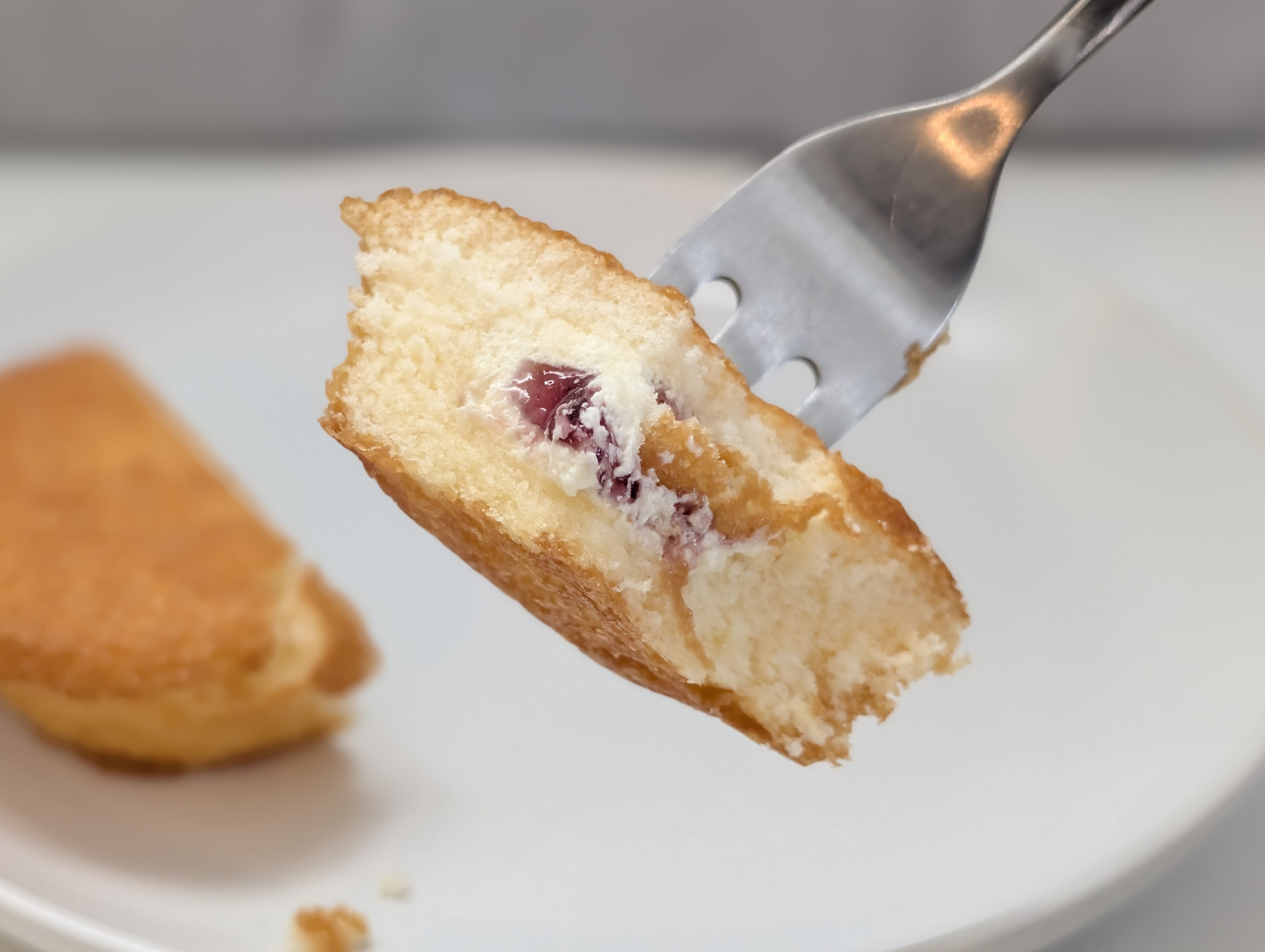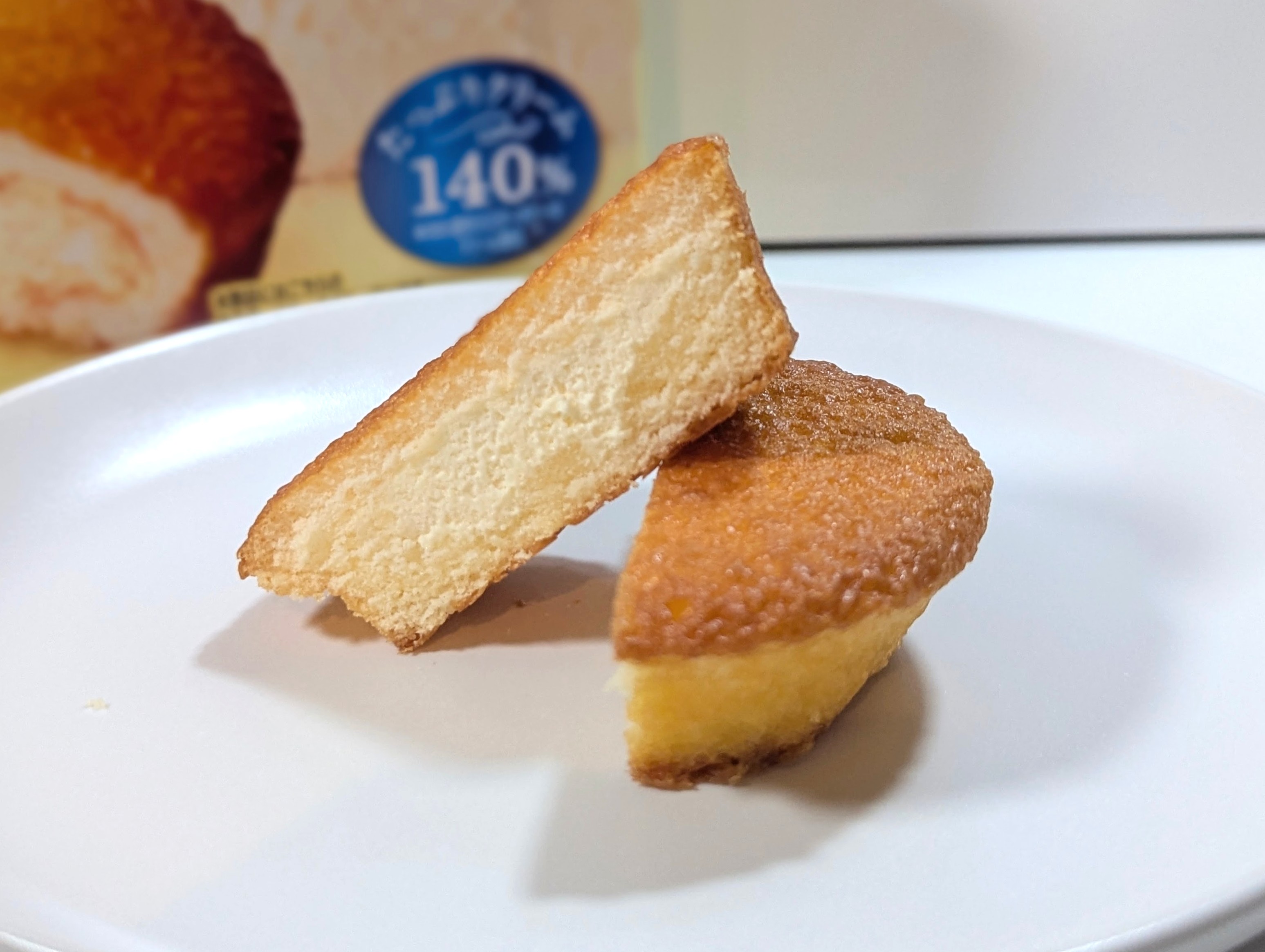 食感は定番のカスタードケーキと変わらず、ふわふわ、しっとりしており、軽やかな口当たりで、パサつきを感じさせない仕上がりです。咀嚼していくと、じゅわりとけて、瞬く間に消えていきます。