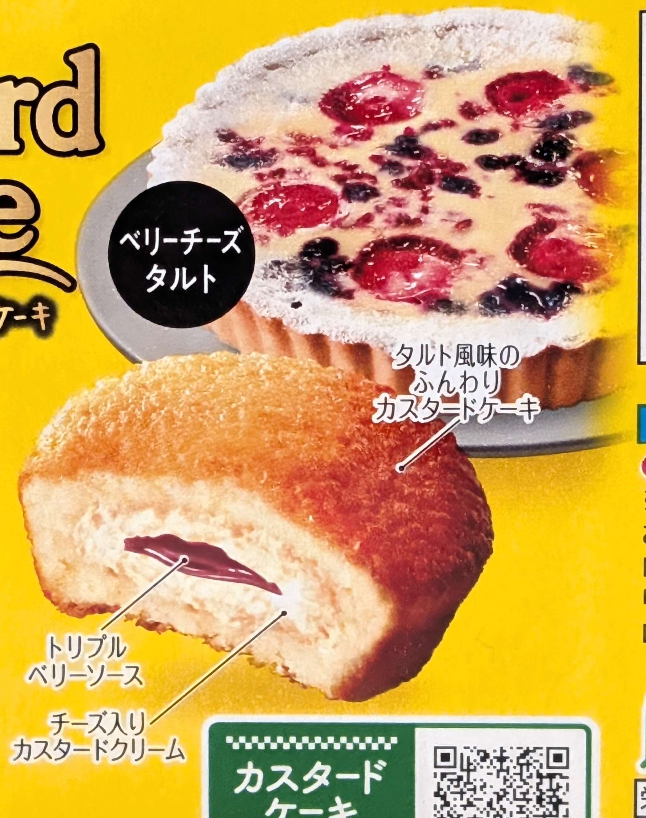 箱の裏面の説明書きによれば、「トリプルベリーソース」と「チーズ入りカスタードクリーム」が入っているとのことです。