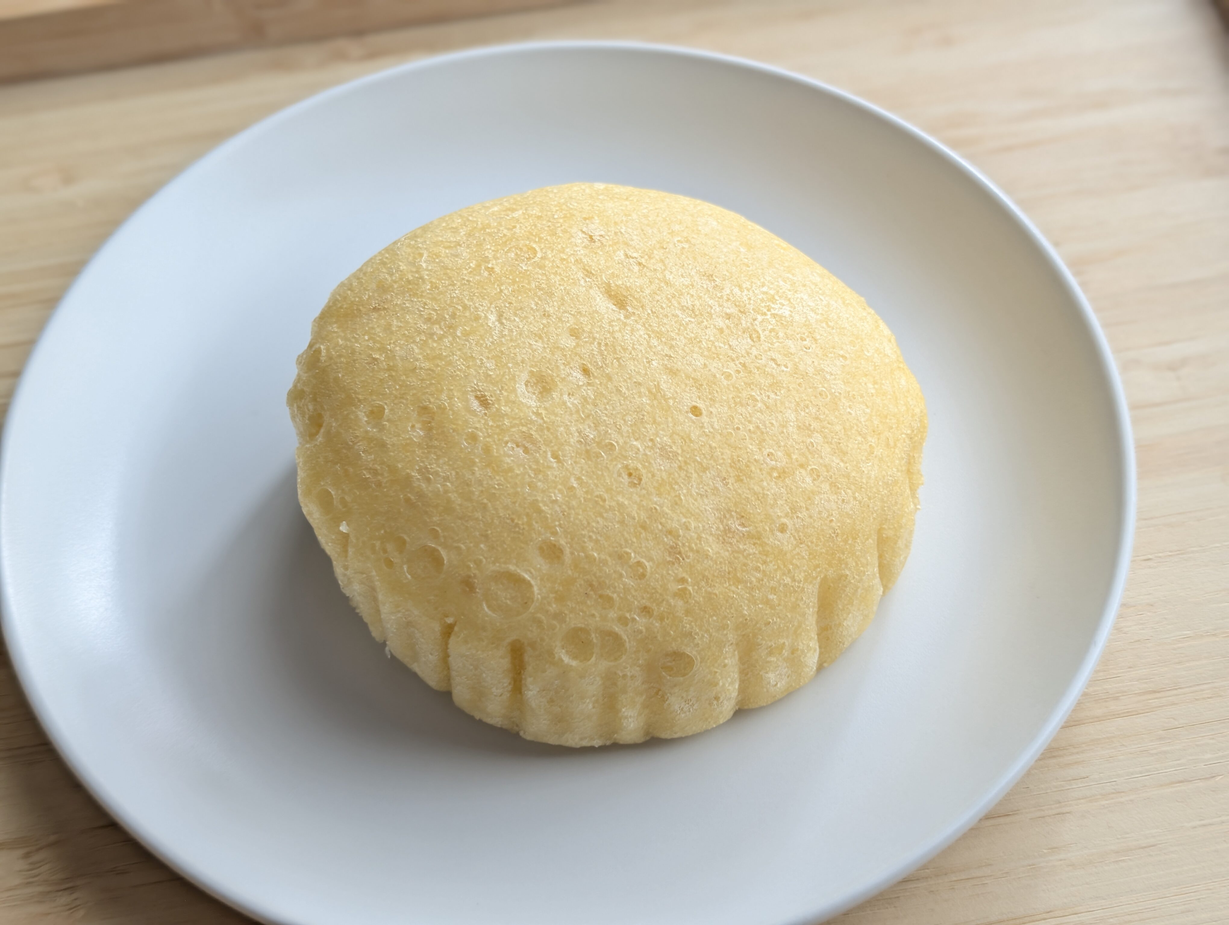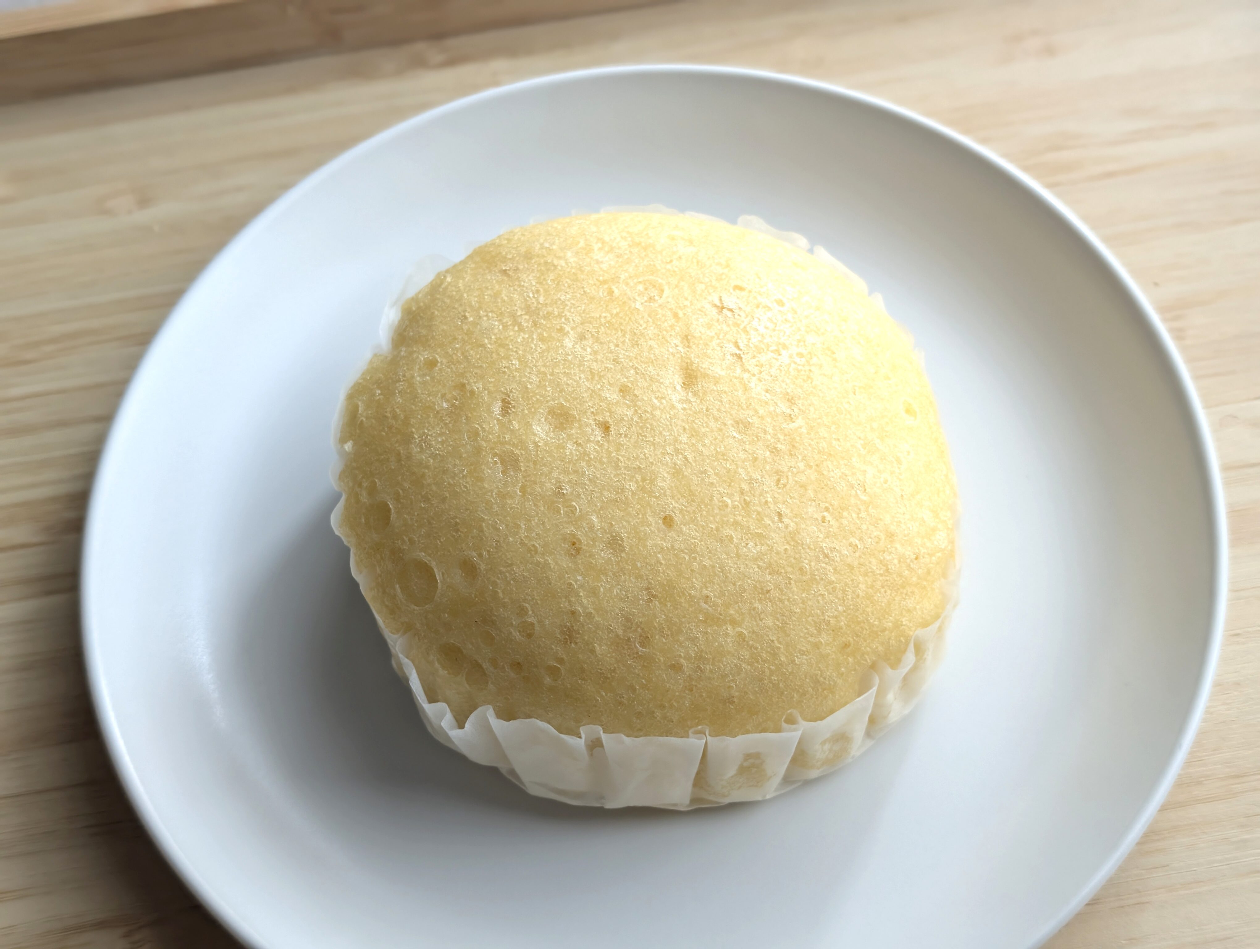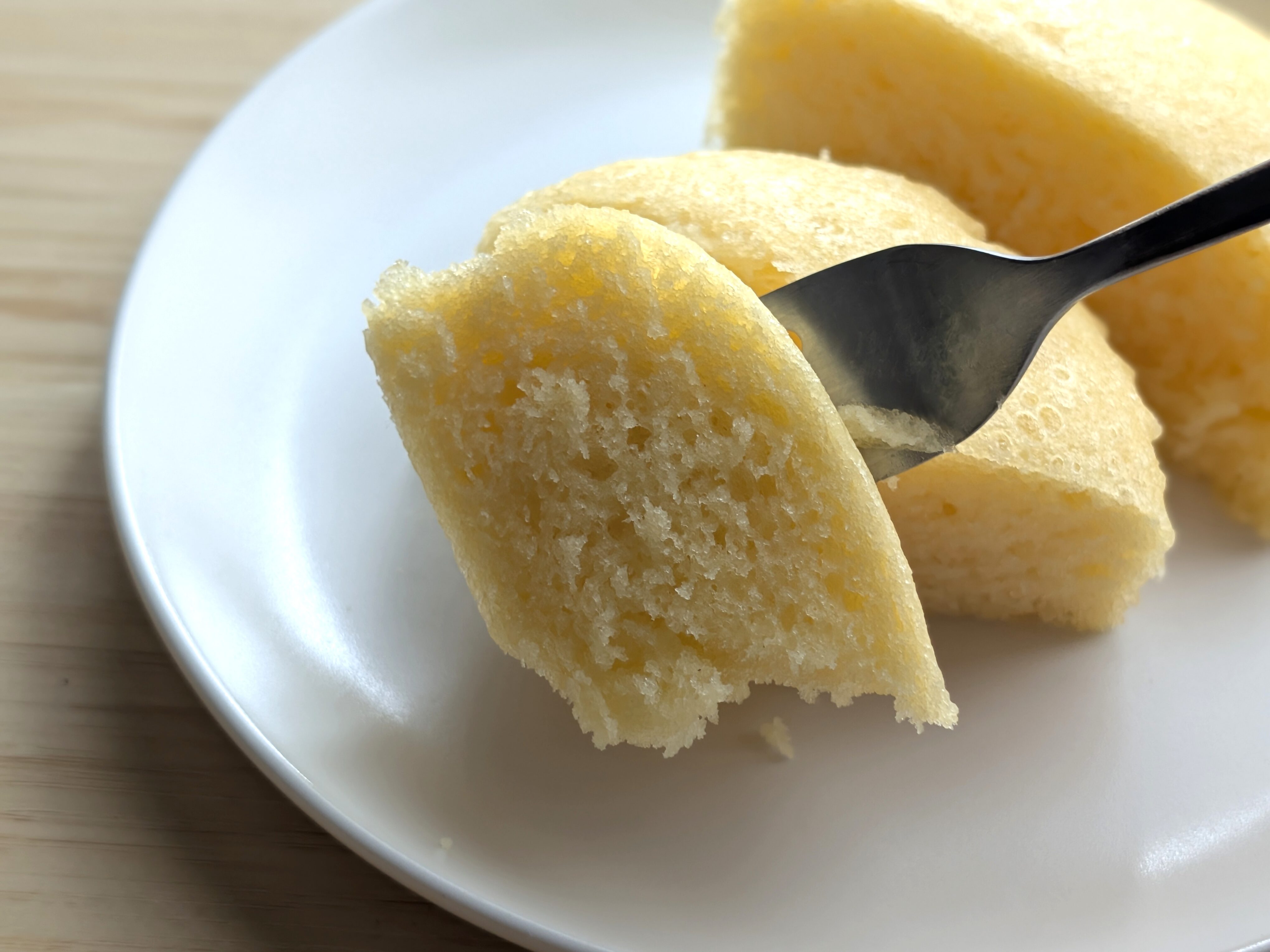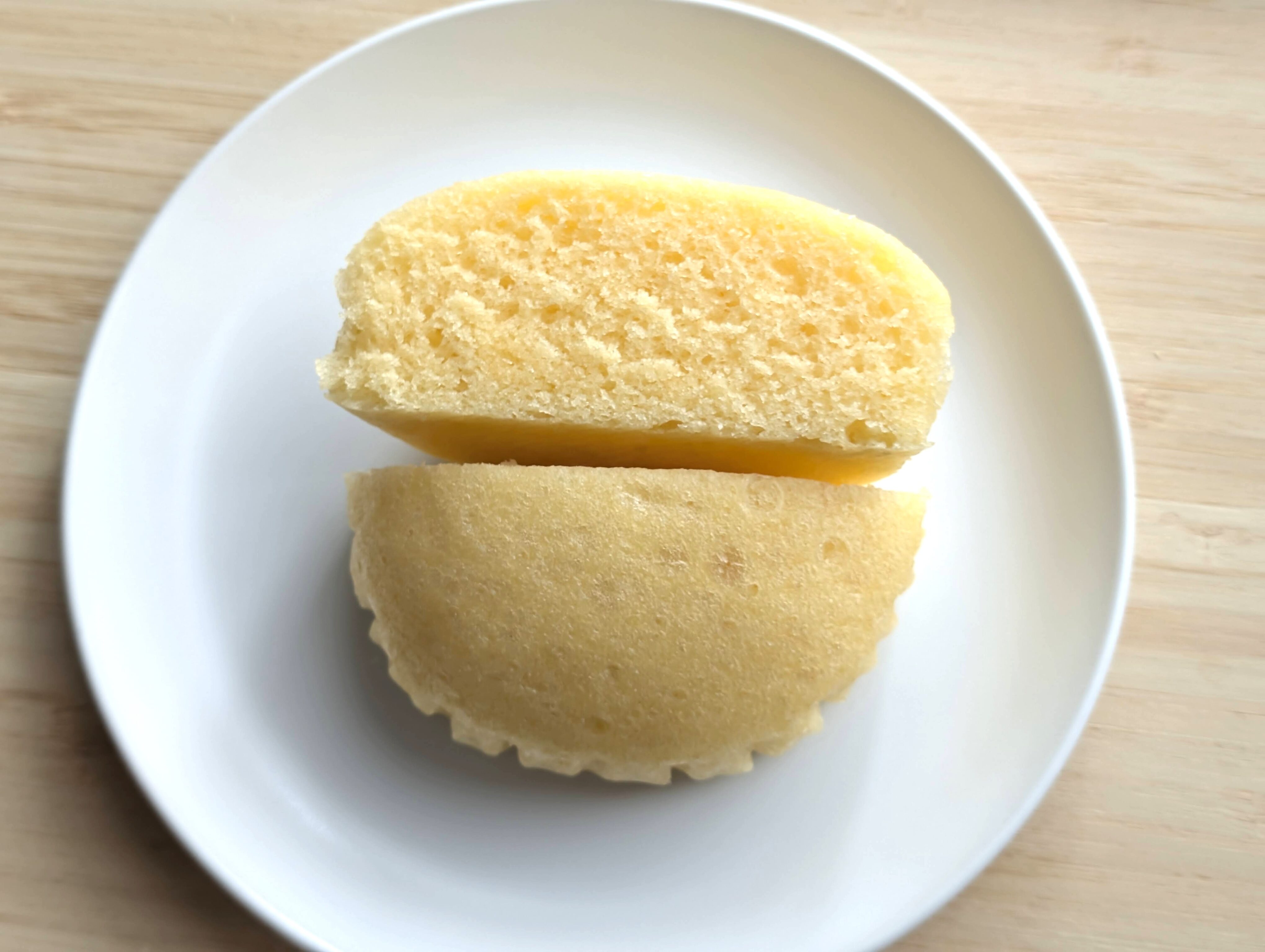 実際の商品を見ていきます。外見は普通のジャンボ蒸しケーキですが、公式サイトによると、生地にクリームチーズを使用しているそうです。