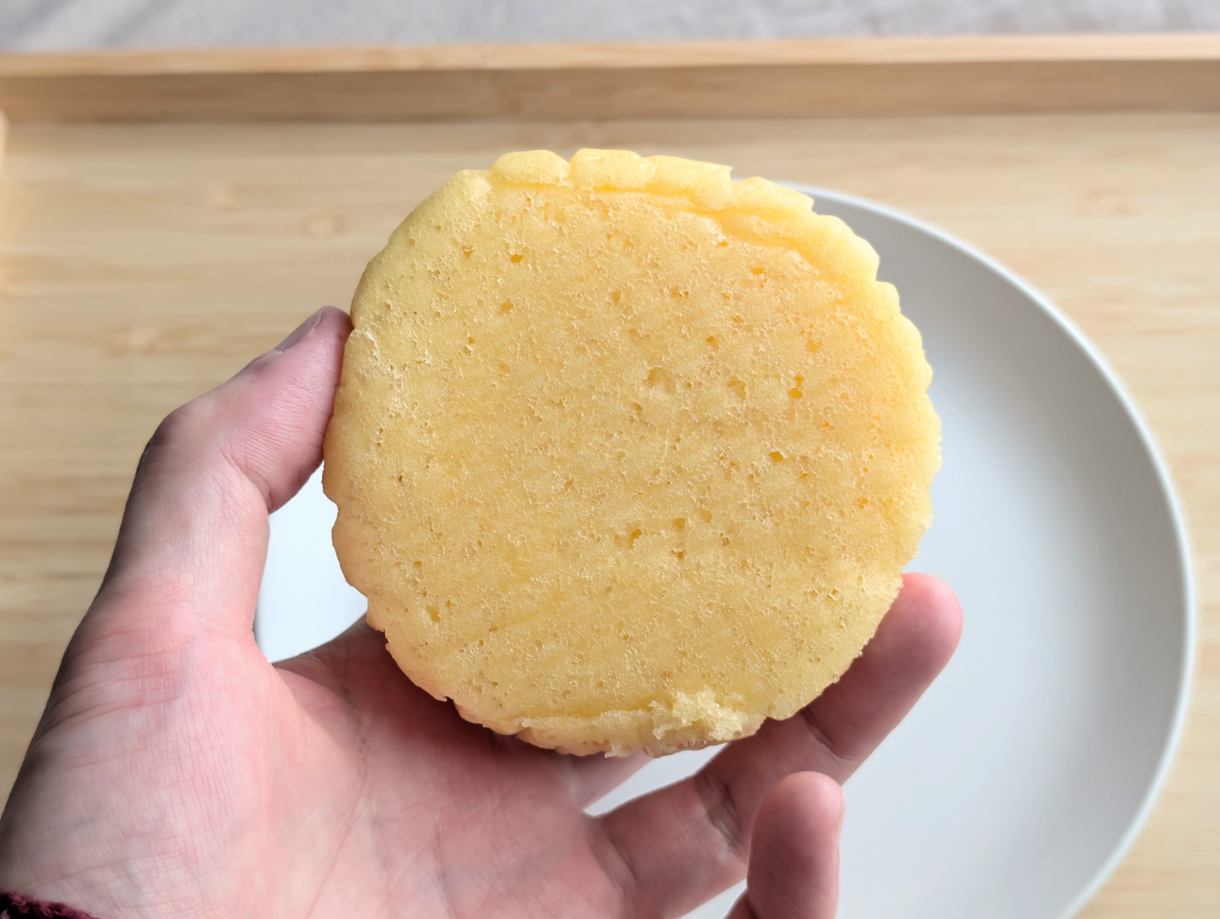 今回発売された「レアチーズ」は、サイズはジャンボ蒸しケーキと同じです。今回はイオン系のスーパーで購入したのですが、価格は106.92円(税込み)でした。100円ちょっとでしっかりと食べ応えのあるサイズ感です。あらゆるモノの物価が上昇している昨今、非常にコスパの高い商品であるといえます。