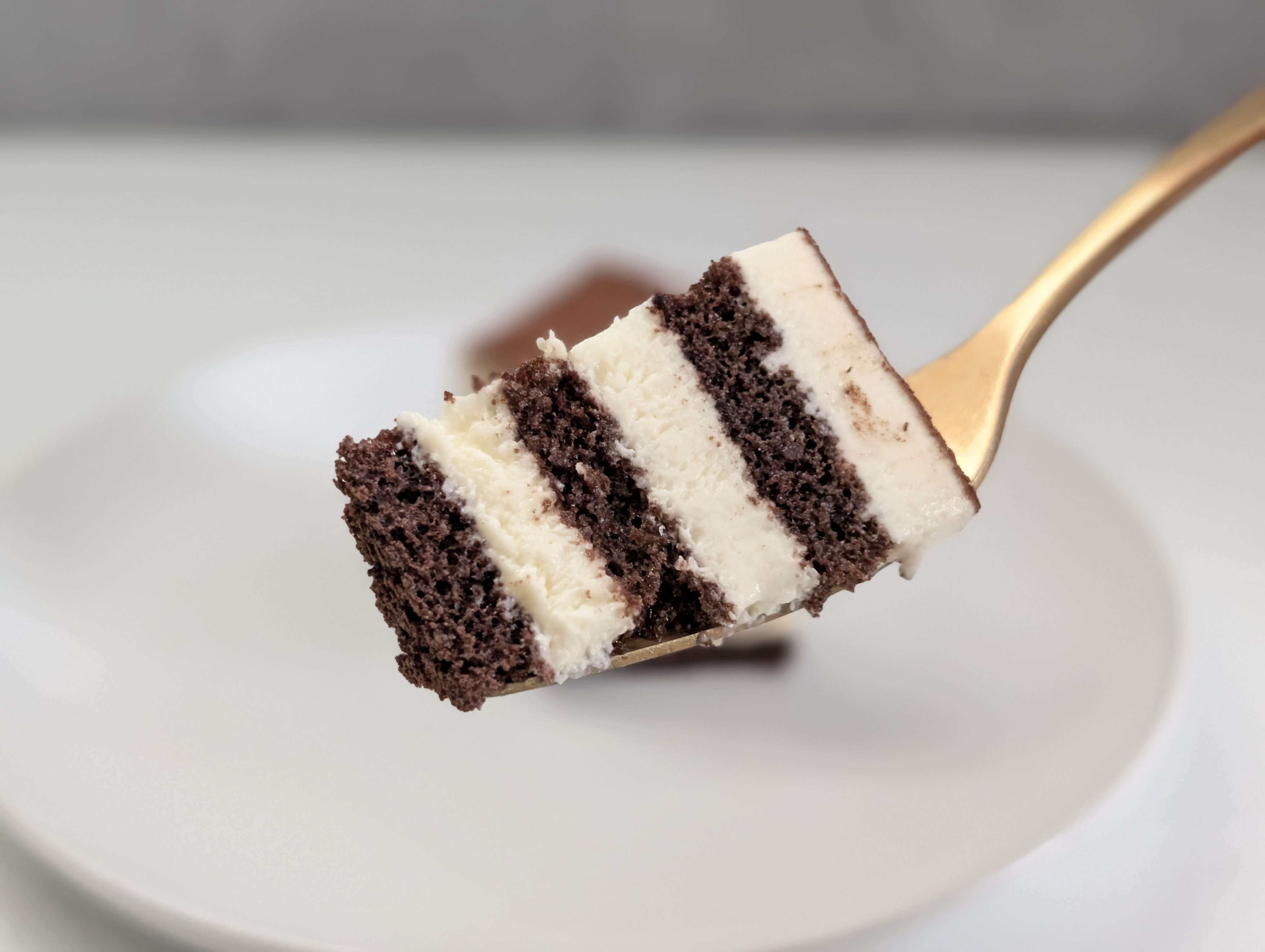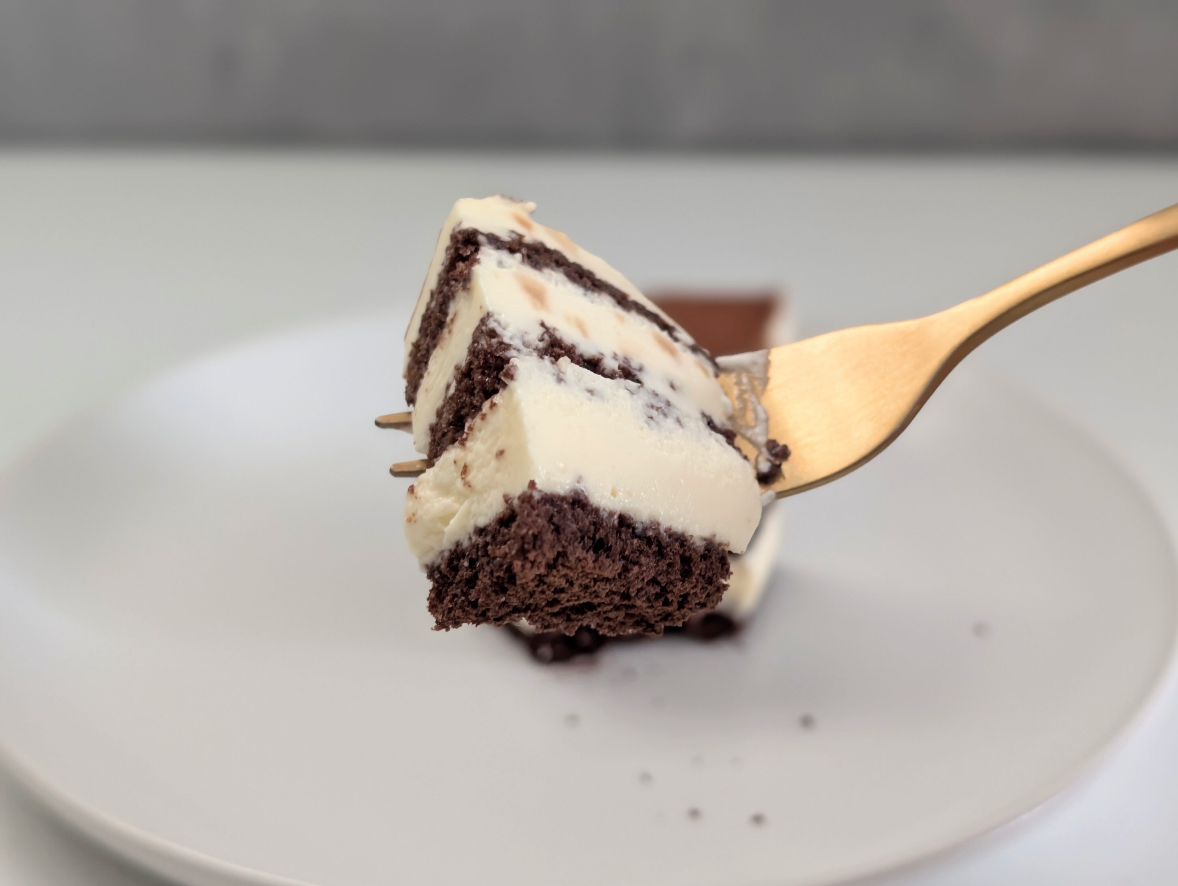 黒い部分は公式サイトによれば「ショコラジェノワーズコーヒーシロップ」となっており、こちらはチョコを混ぜたスポンジ生地にコーヒーシロップを浸透させた生地です。