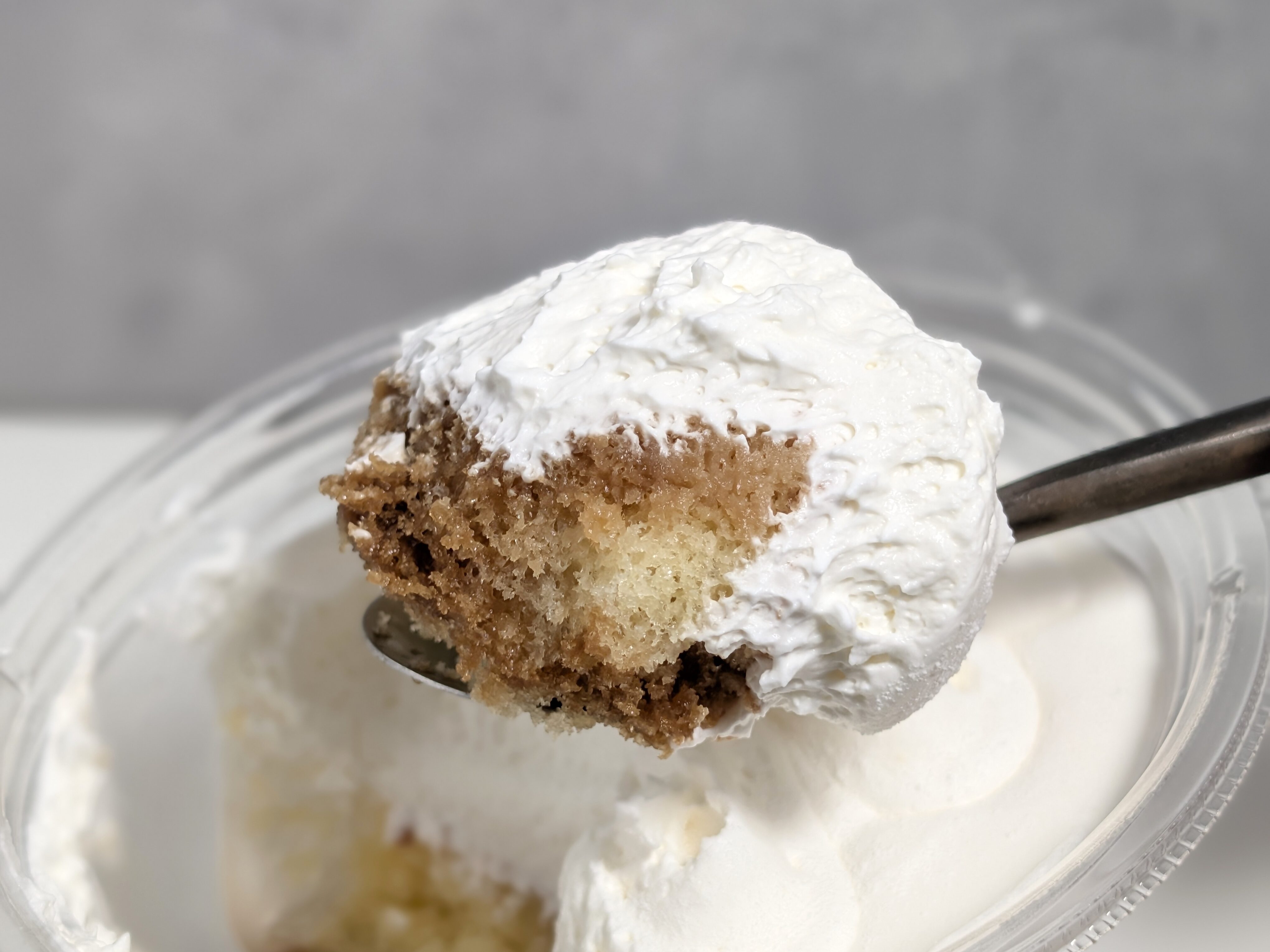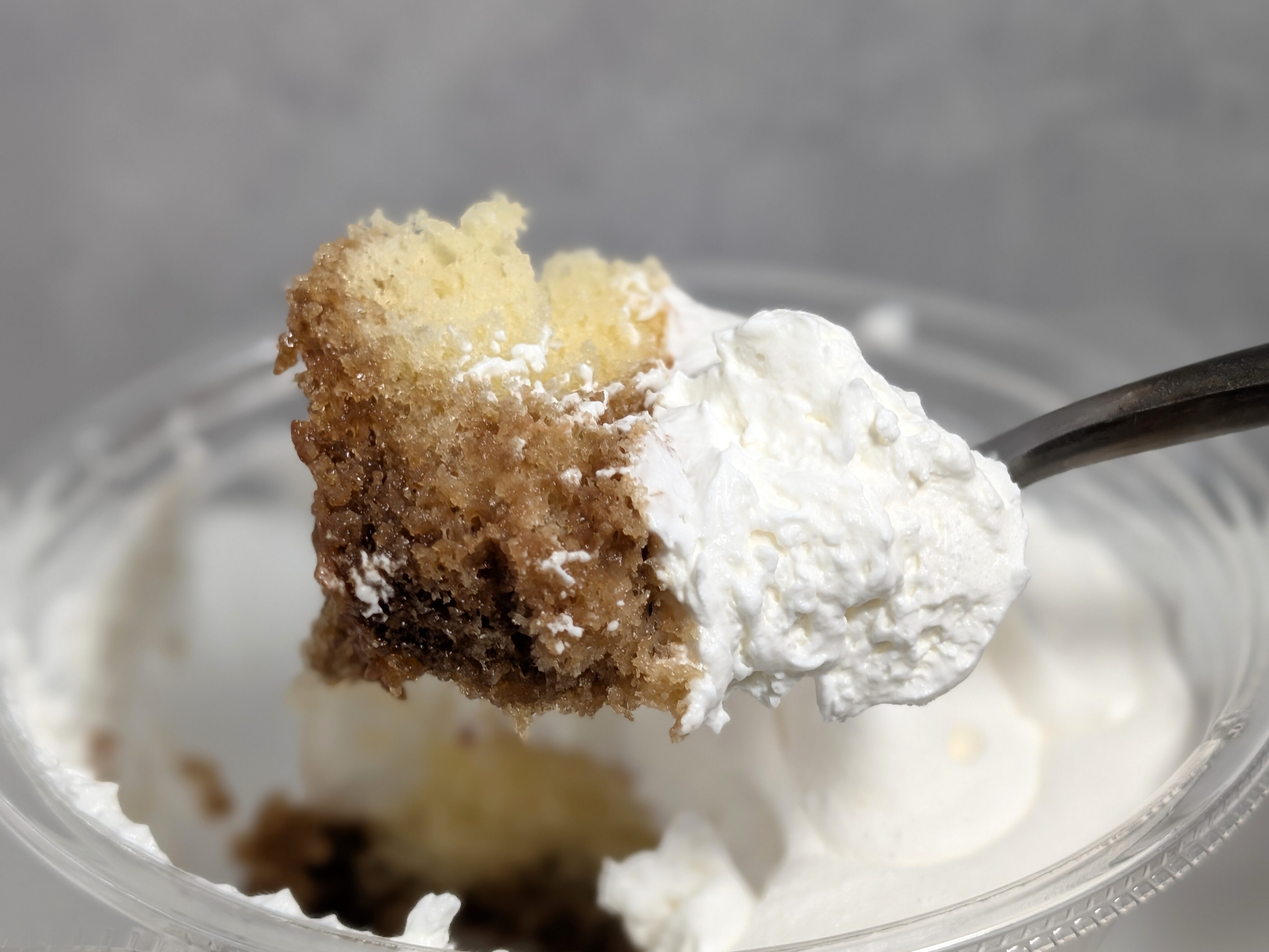 また底のスポンジからは、しっかりとしたコーヒーの風味を感じます。ガツンとくる苦味ではありませんが、たしかに存在するコーヒーの苦みと風味は、表面の白いクリームと絶妙にマッチしています。