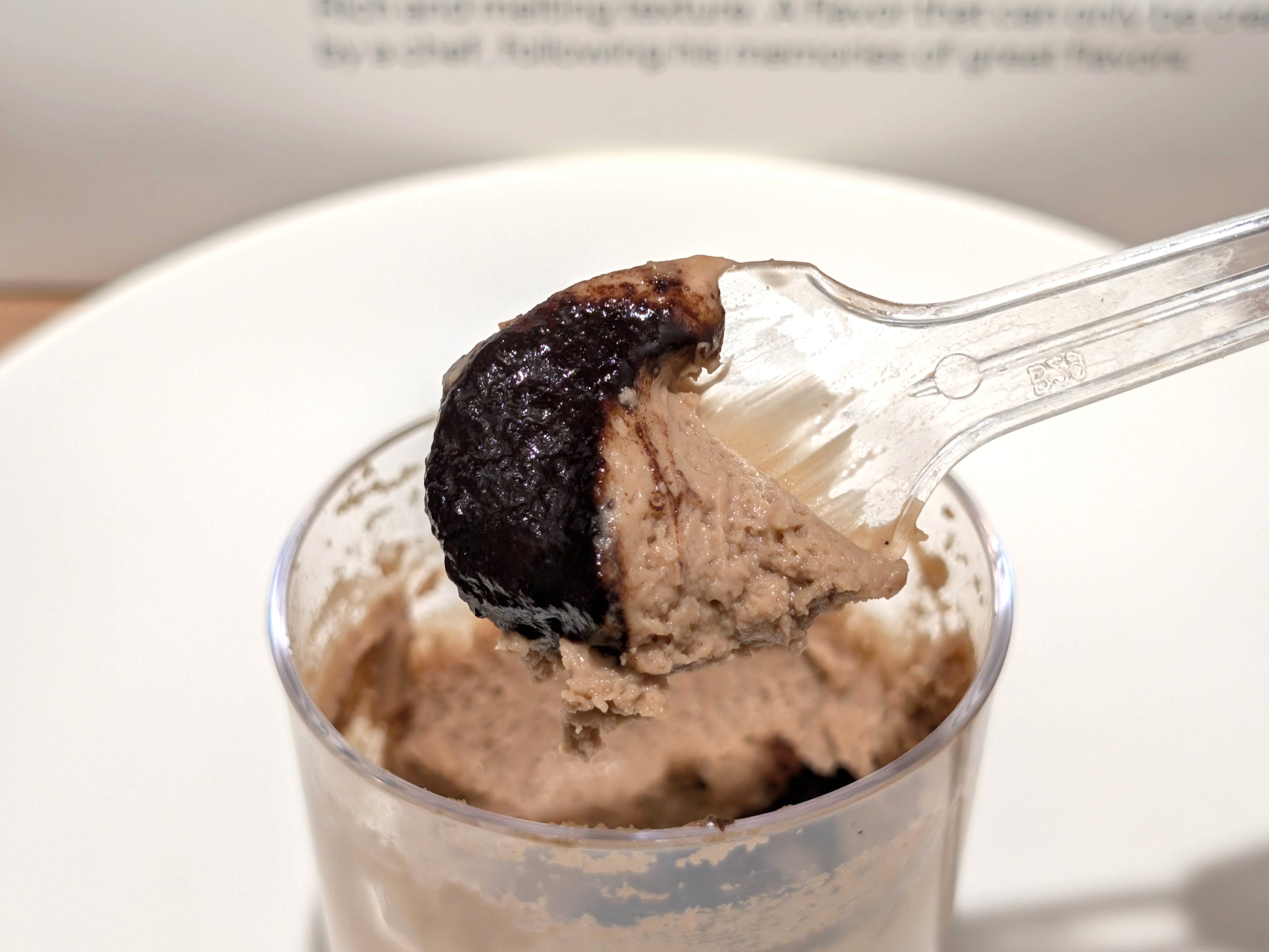 チョコの風味が主体なので、クリームチーズの風味をはっきり感じられるわけではないのですが、チョコレートとコーヒーの、味の輪郭を描くのに一役買っています。クリームチーズが持つ濃厚さがあるからこそ出せる深みと奥行き感じる味です。
