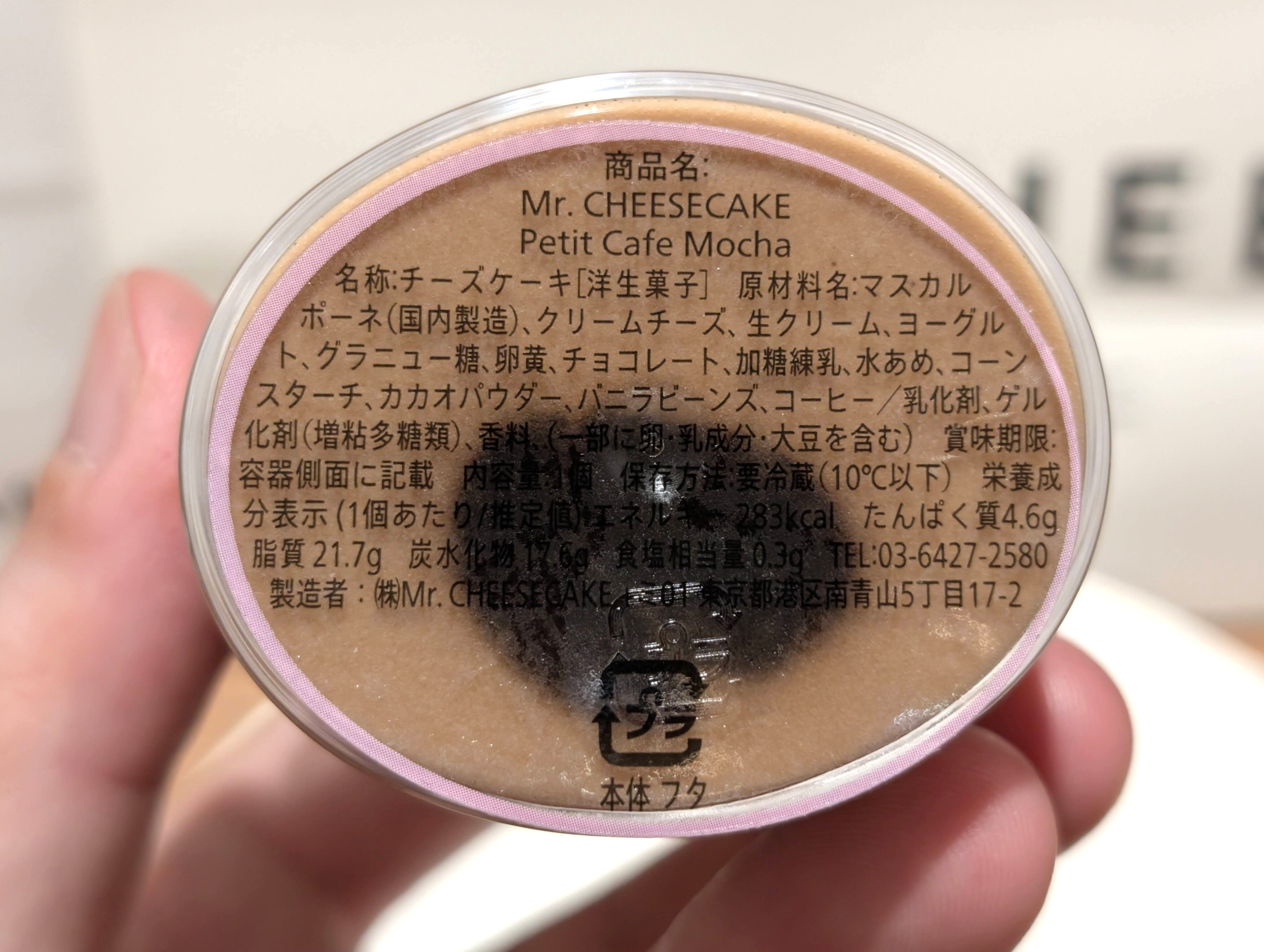 さて、今回購入したのは、バレンタインシーズン限定の「カフェモカ」というフレーバーのチーズケーキです。このフレーバーは17cmのスクエアサイズと、1人で食べるのにちょうどいいカップタイプの「プティ」があります。今回はプティを購入しました。