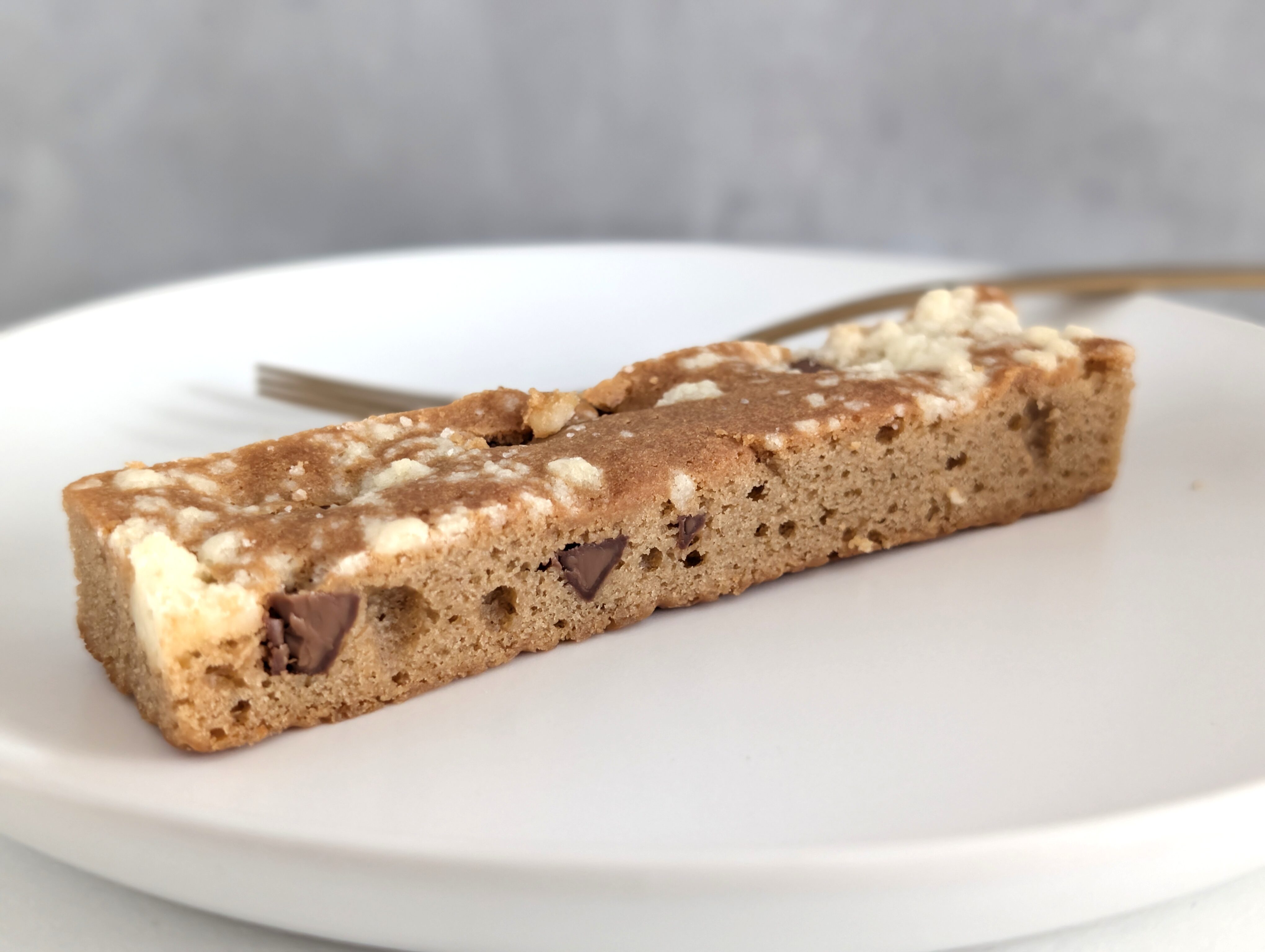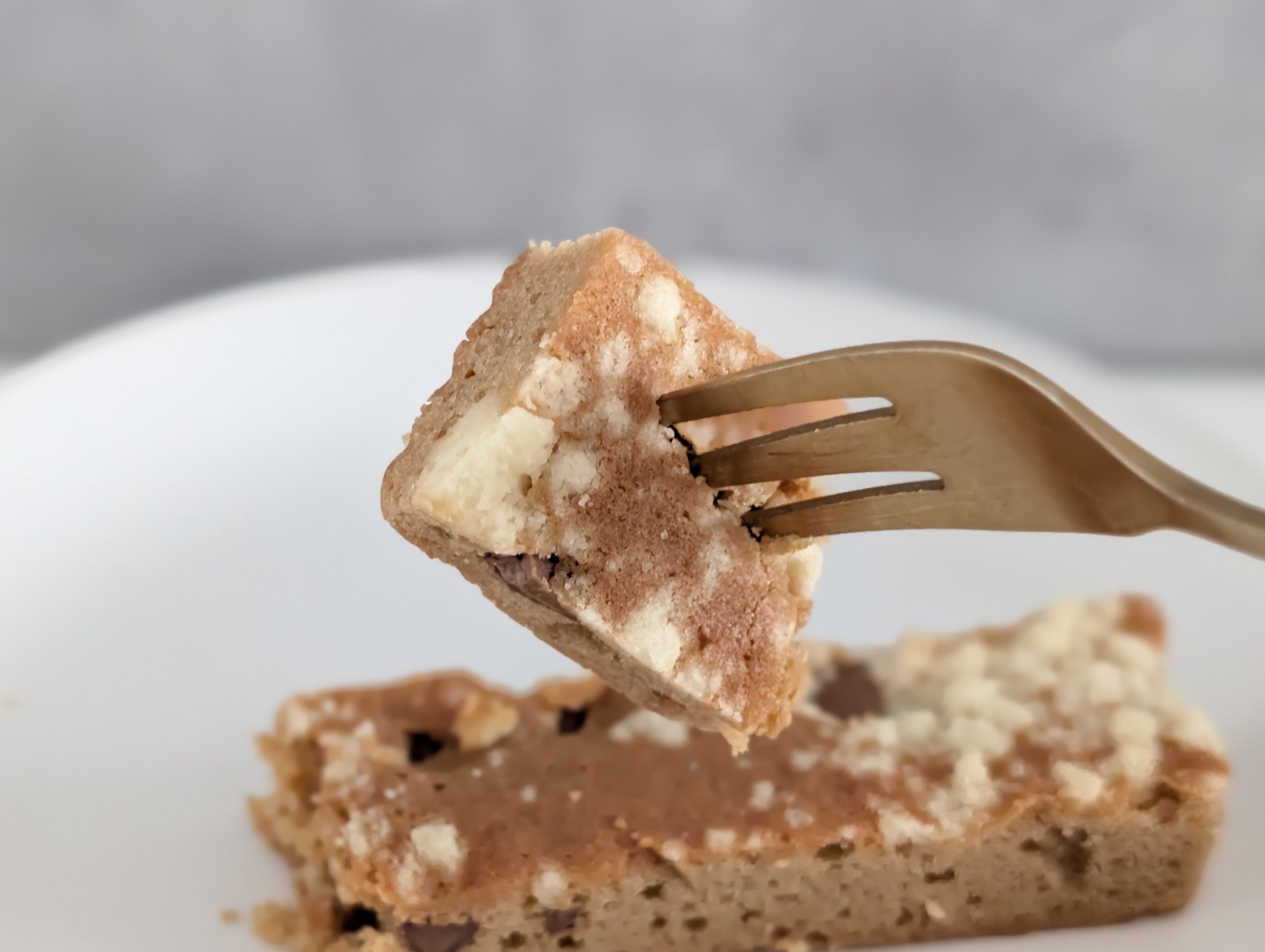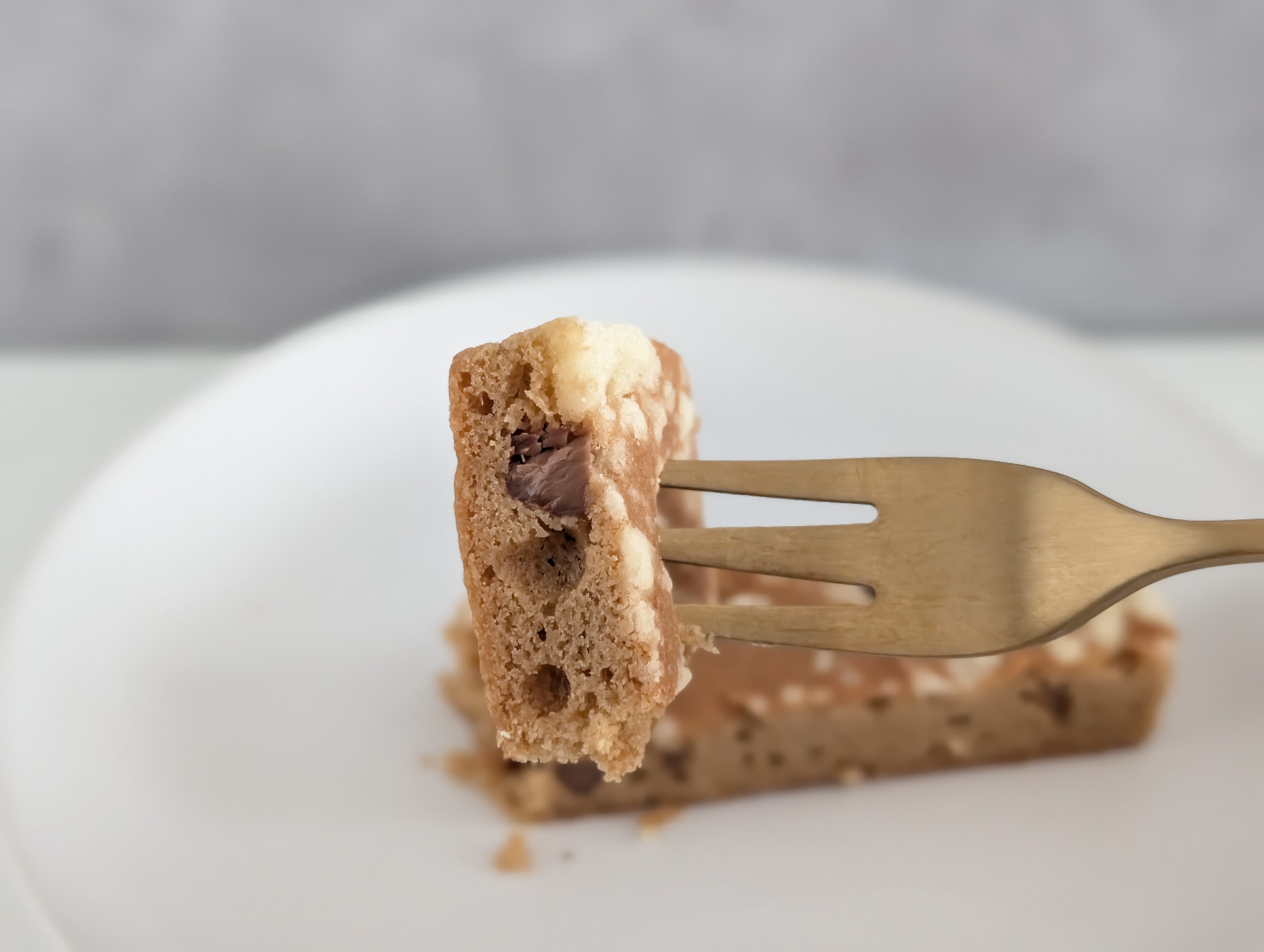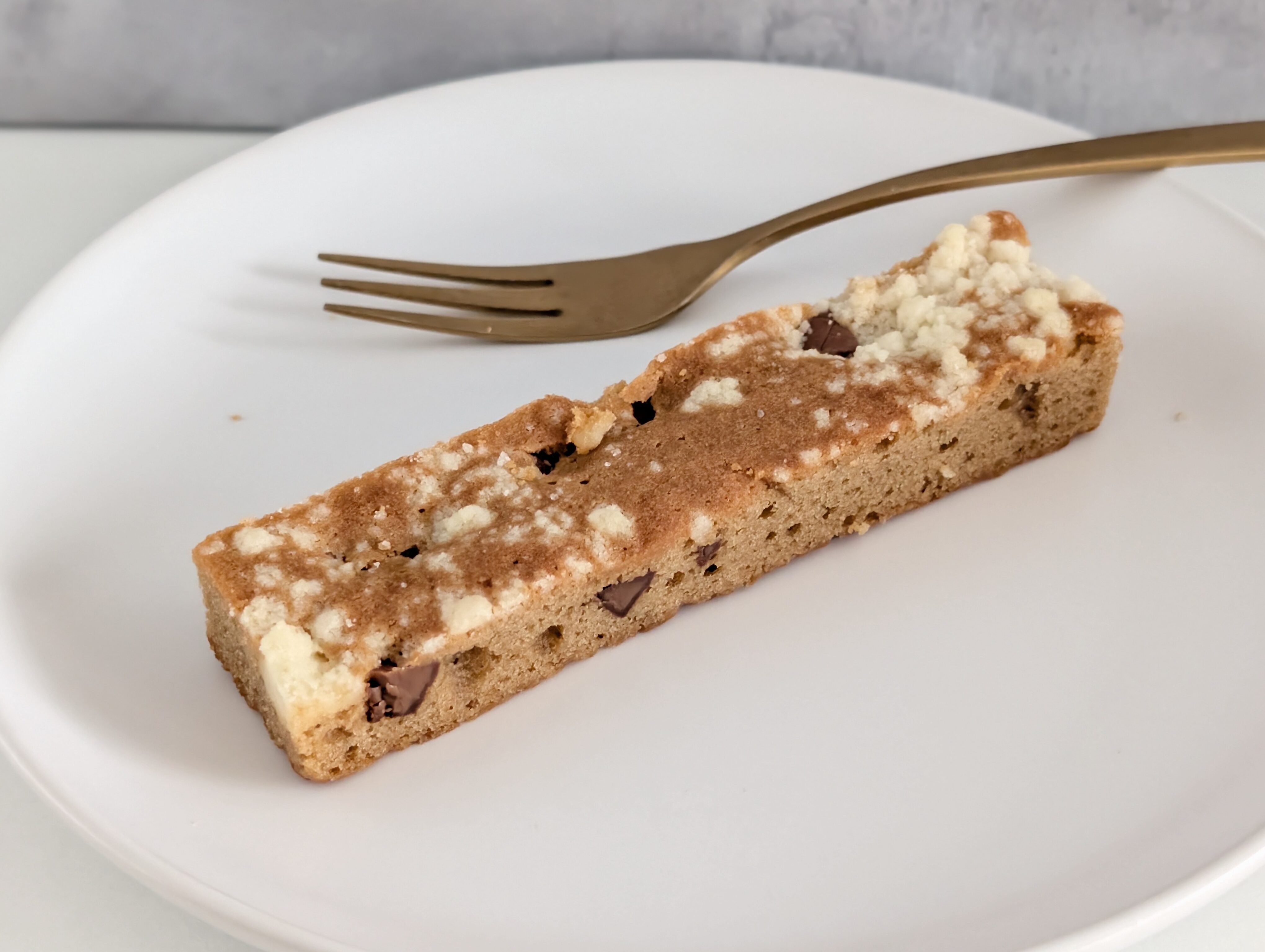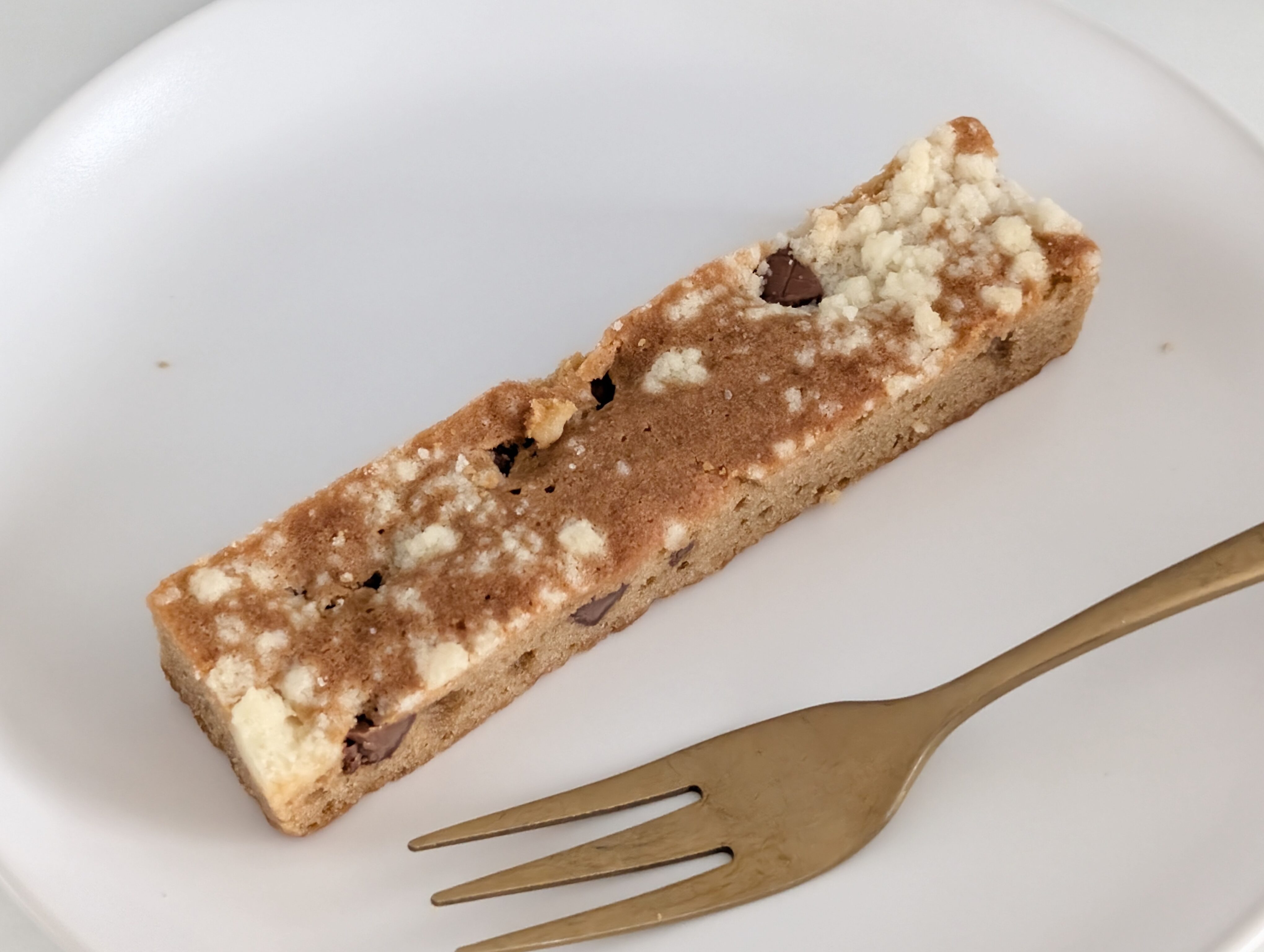 まず食感ですが、生地本体は焼き菓子のようなふわふわした食感なのですが、チョコチップのザクザクした食感やそぼろのサクサクした食感など、硬めの食感もあり、緩急があります。