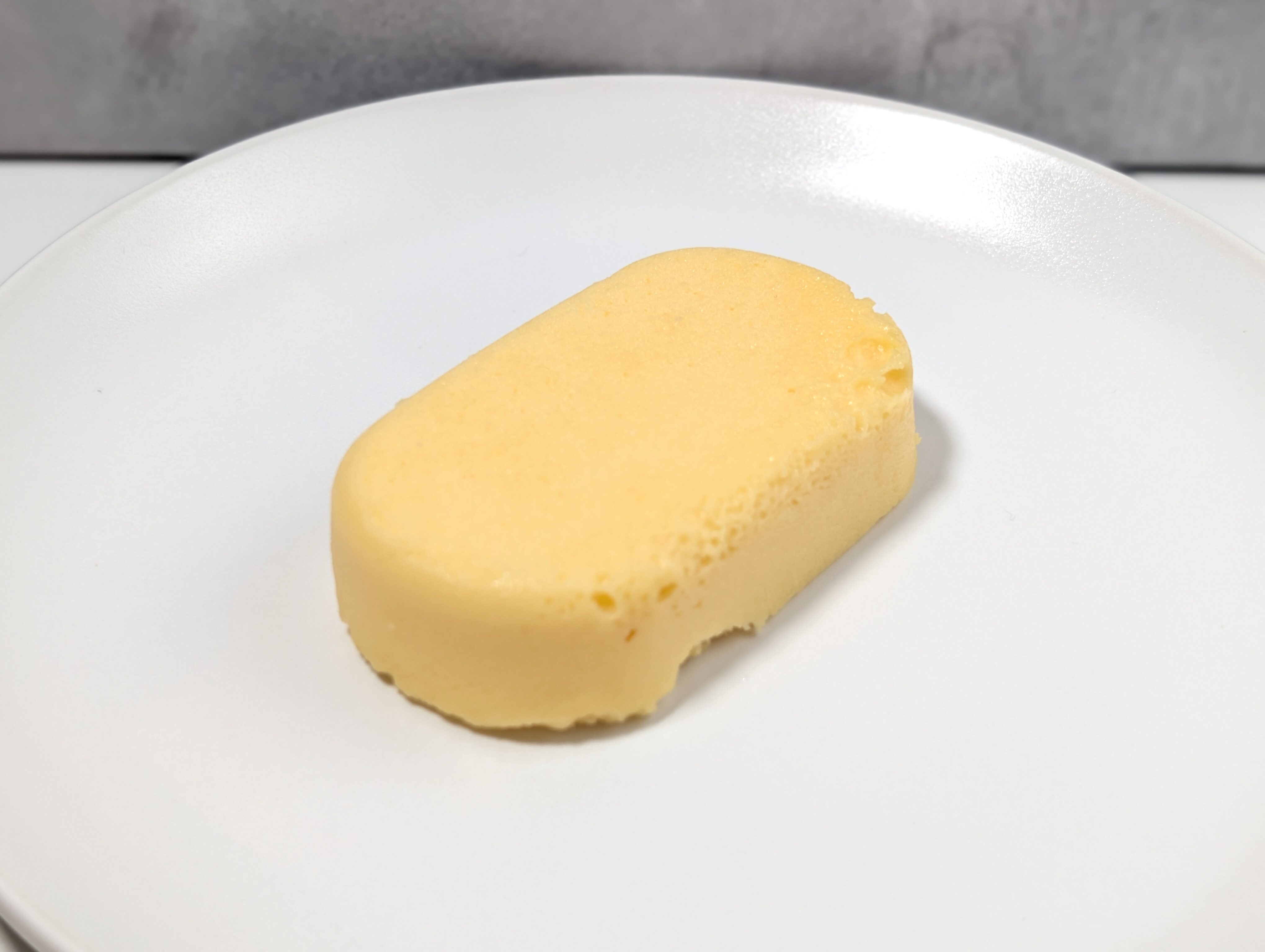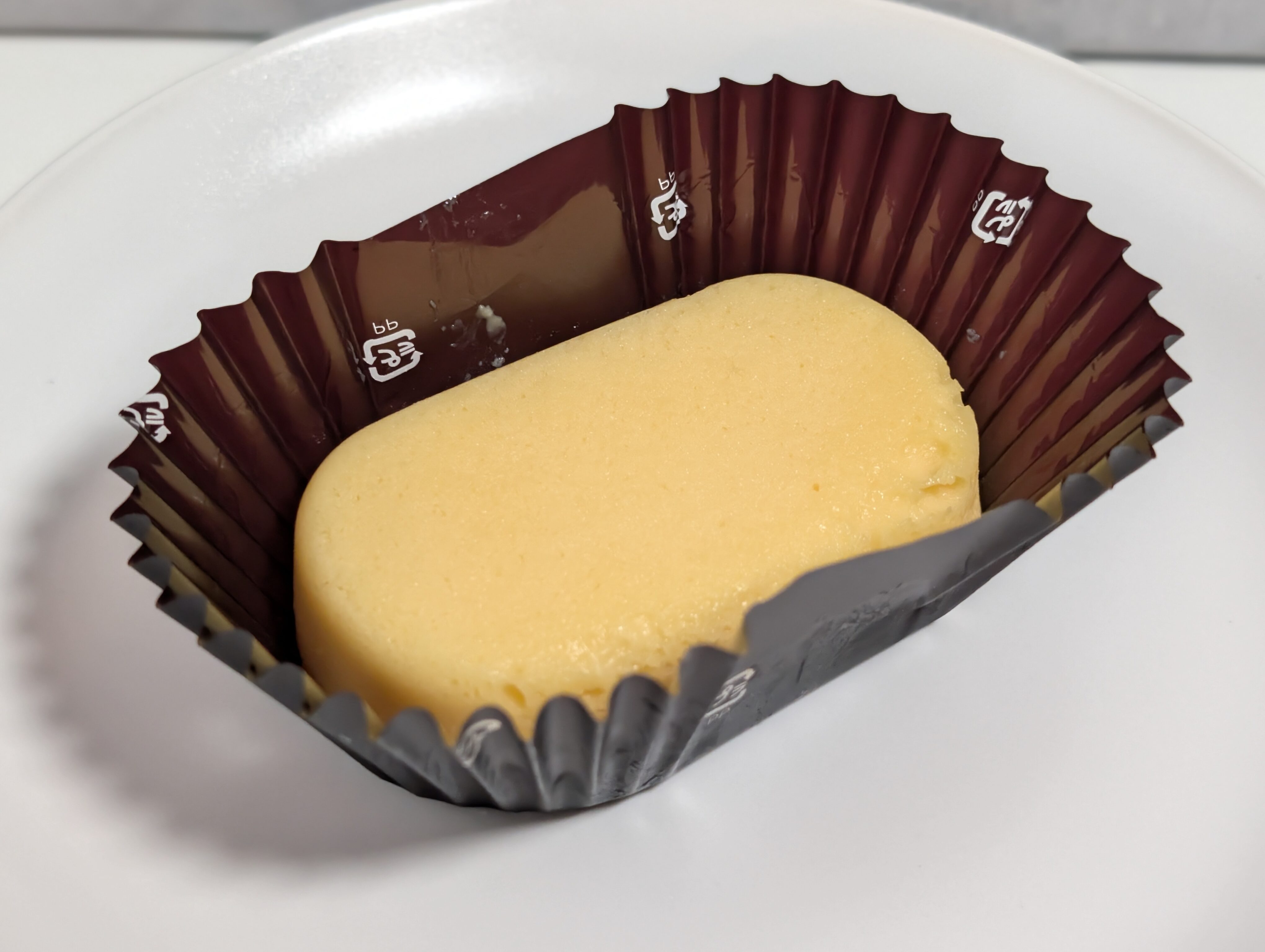 外見はチーズケーキと蒸しケーキの中間のような印象です。チーズケーキによくある、底のクッキー生地や、表面のトッピングなどはありません。