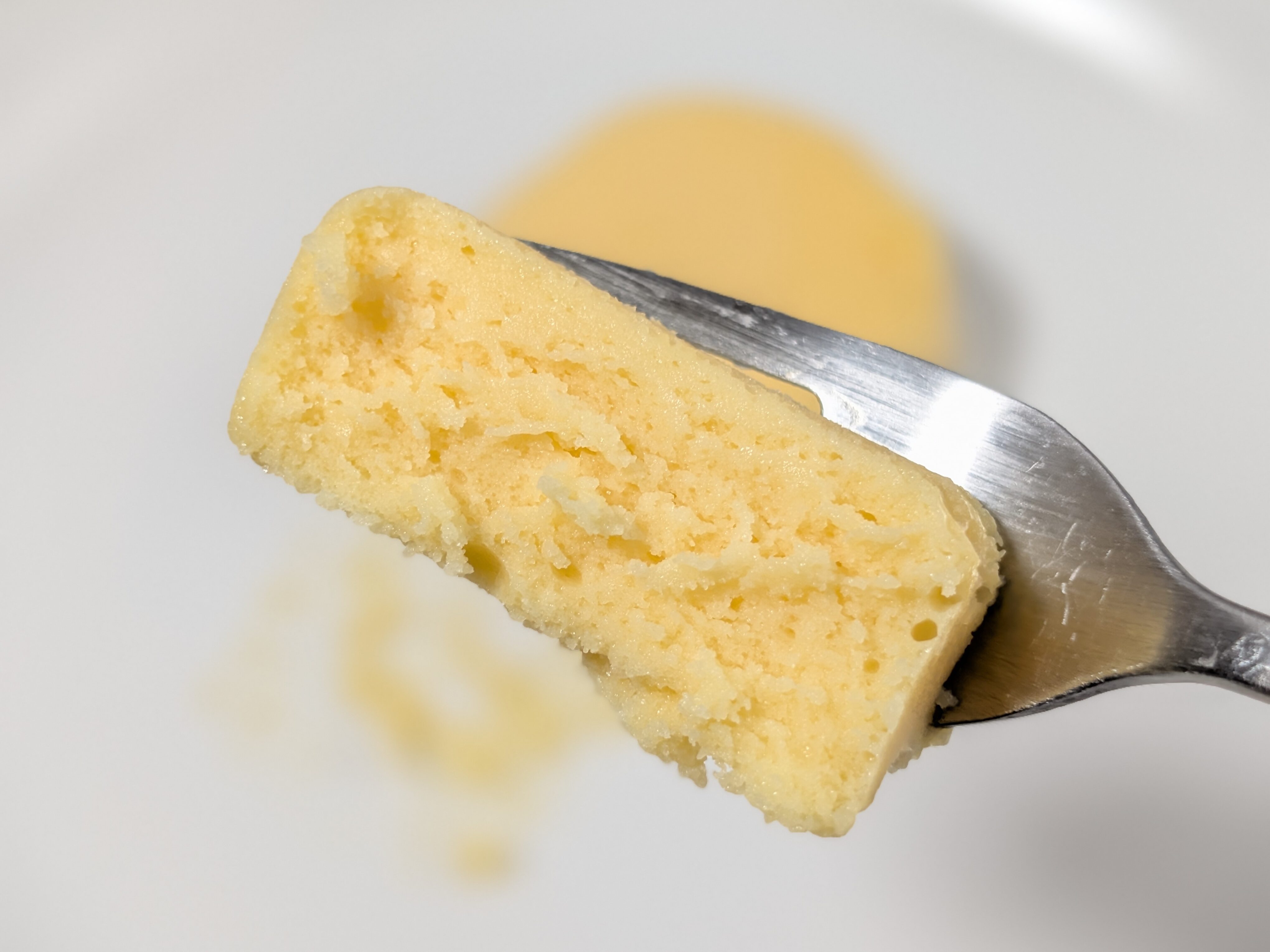 ふわふわとした気泡を潰す感覚はあるのですが、スフレともまた違っており、「ほろほろ、しっとり」した感じがあるでしょうか。「泡のようにふんわりとろける」との説明があったので、スフレやシフォンケーキのような「しゅわしゅわ」した食感を想定していたのですが、少し違っていました。