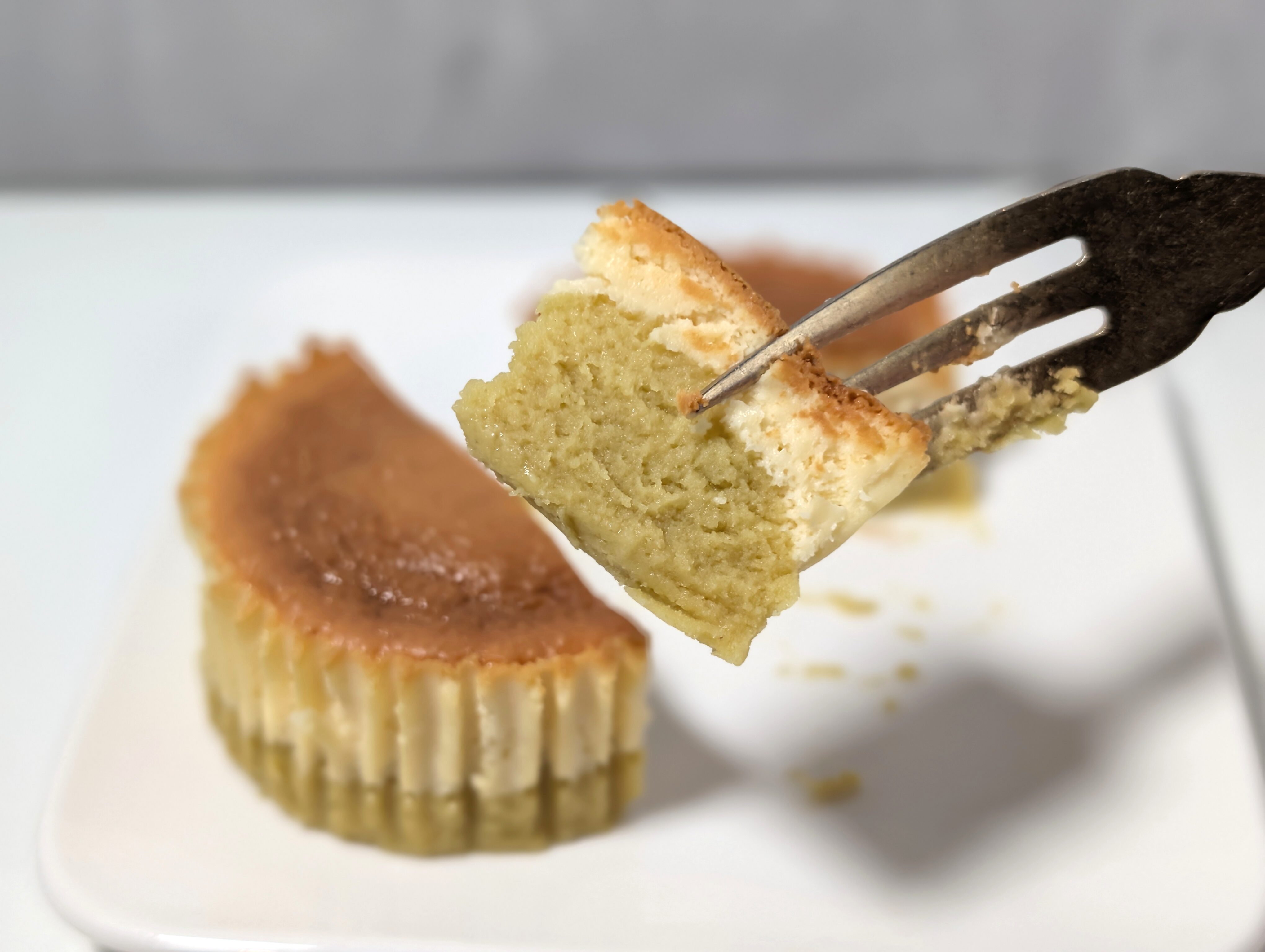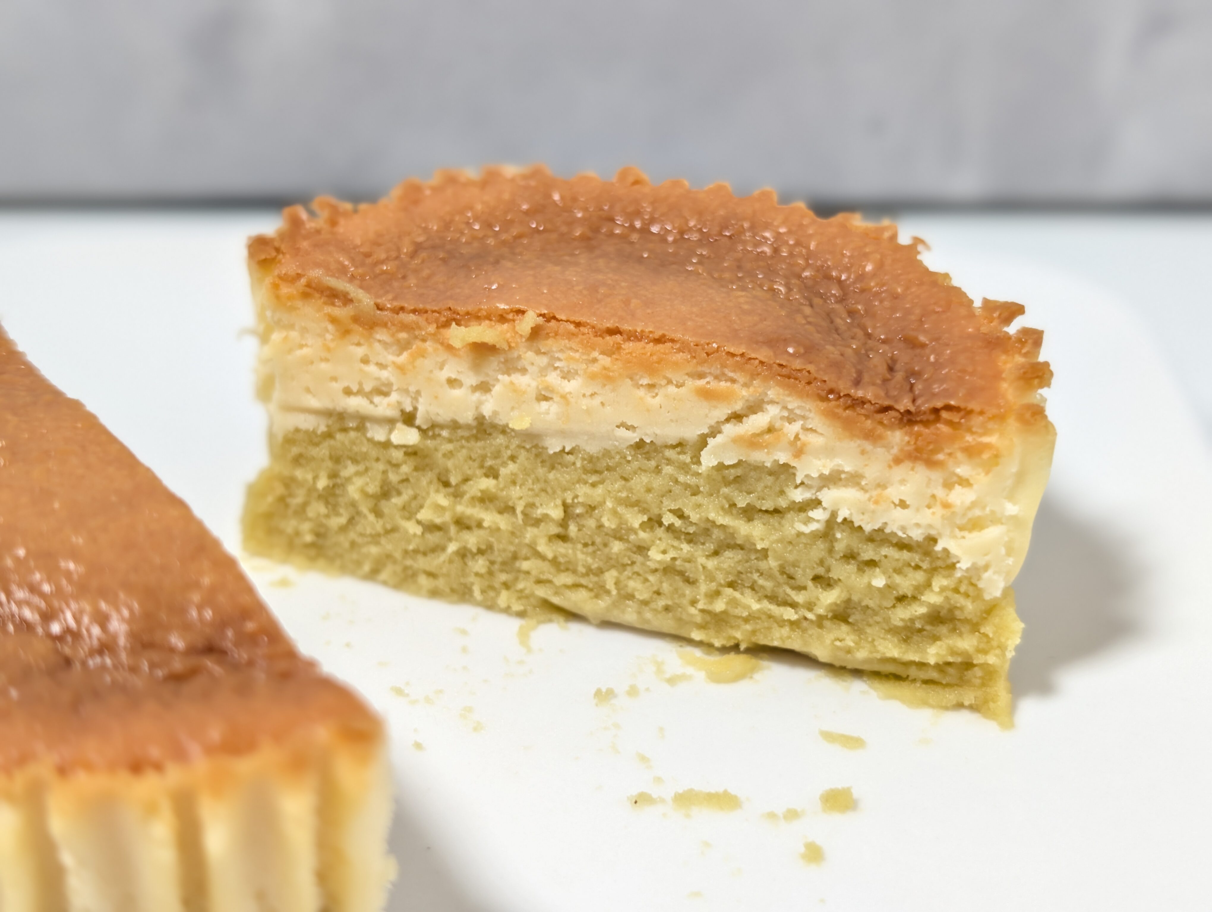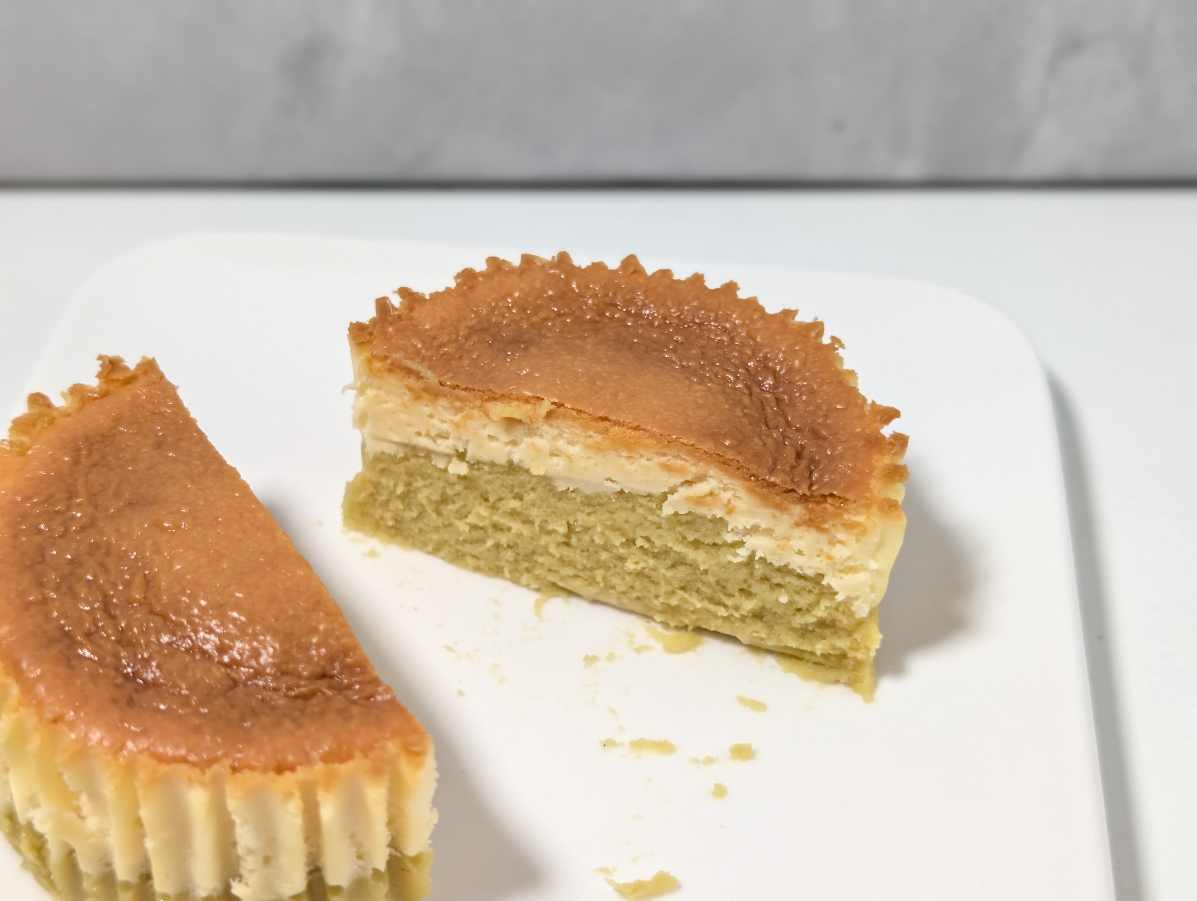 実際に味わってみると、下層のスイートポテト部分は、お芋そのもののようなほっくりとしたやさしい甘味とねっとり感がたまりません。そこに上層のクリーミーなバスク風チーズケーキの風味が絶妙にマッチします。