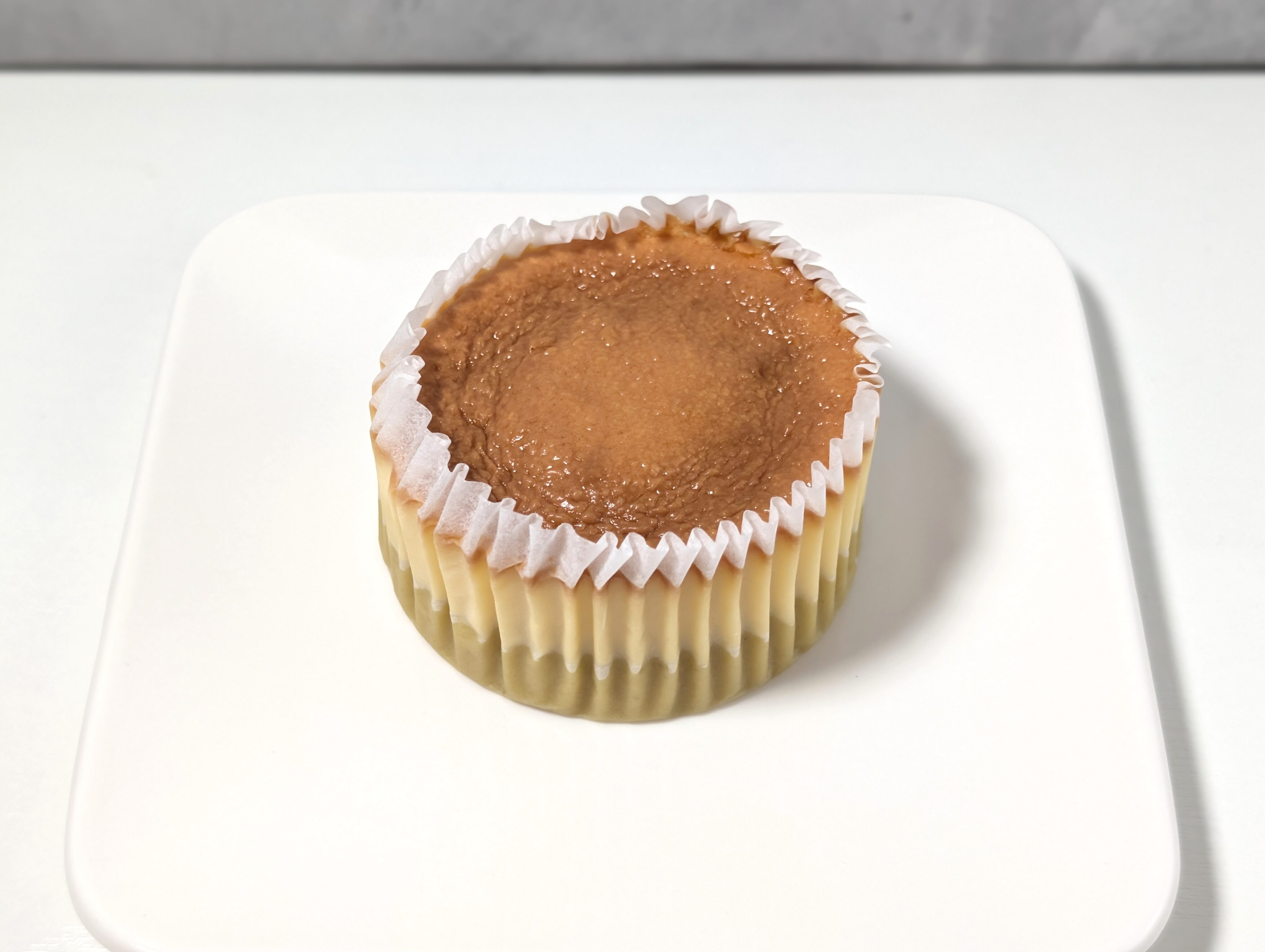 バスクチーズケーキ特有の強い焦げの苦味は抑えられていますが、なめらかでしっとりとした食感と豊かなクリーミーさによって「バスク風」を見事に再現しています。