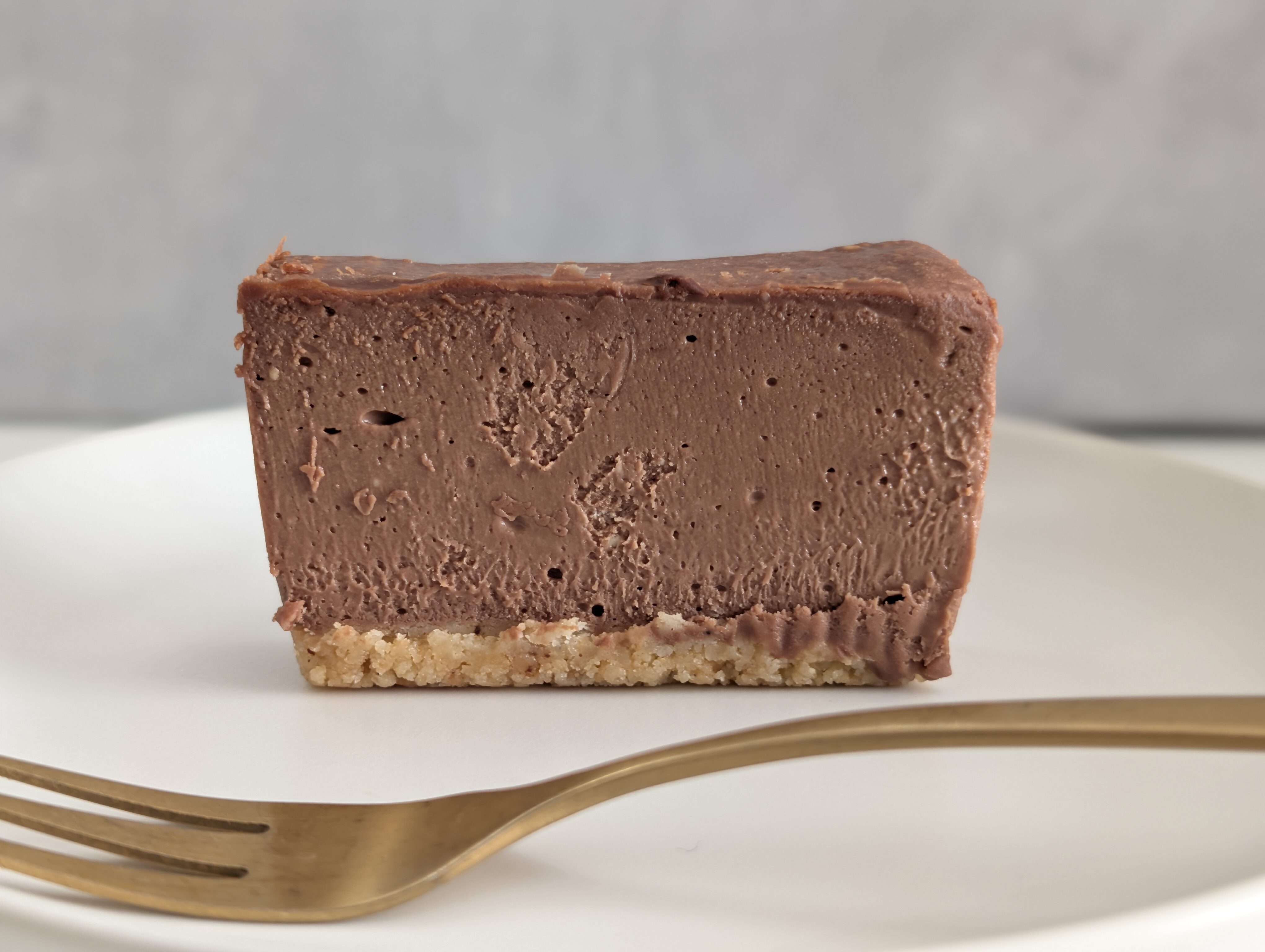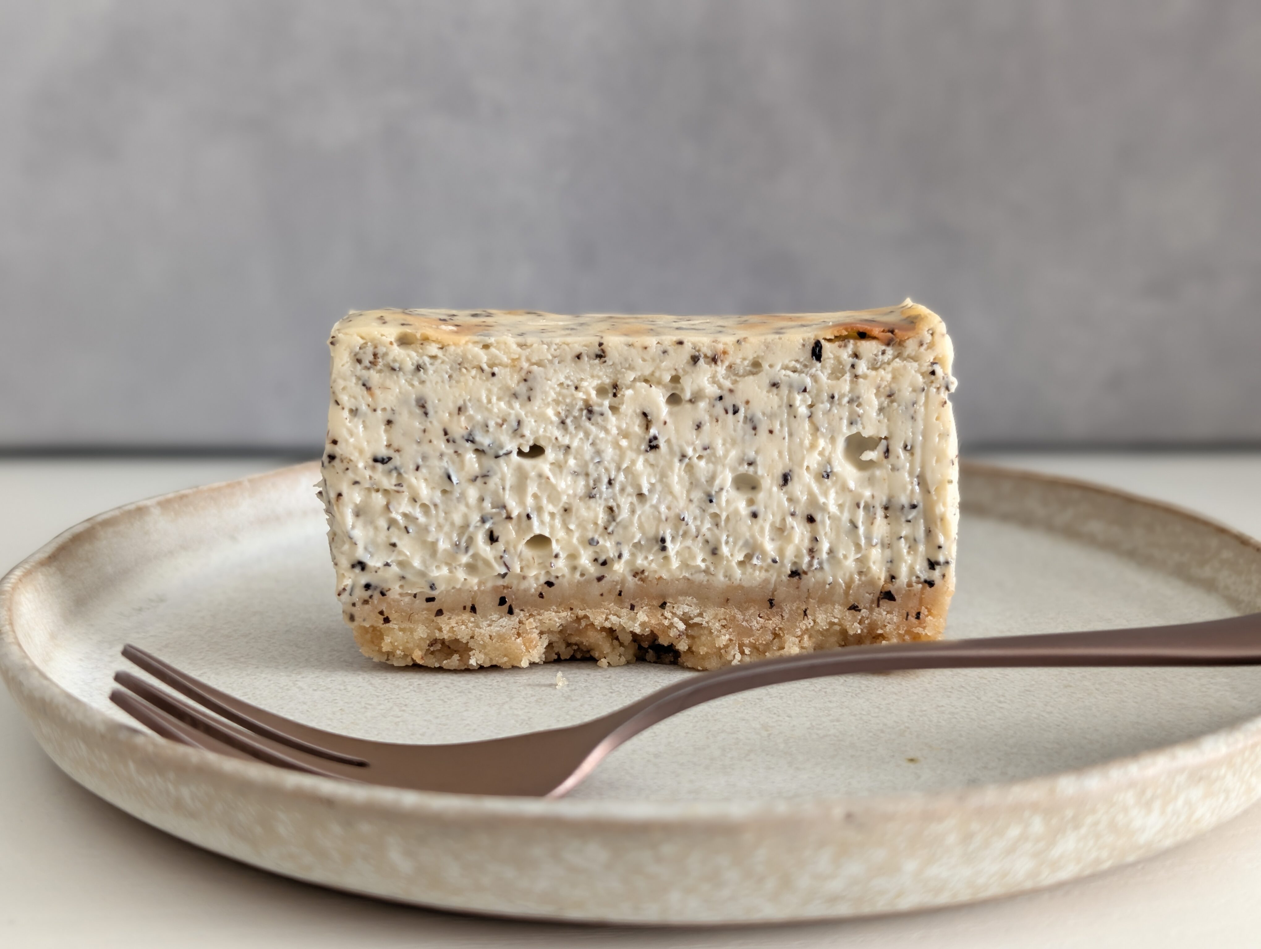 こちらはアールグレイ以上に、中身がギュッと詰まった「むっちり」とした質感です。フォークを通す際にも少し力が必要なほどです。アールグレイ同様、底に敷かれたクッキー生地のザクザク感とのコントラスは非常に魅力的です。