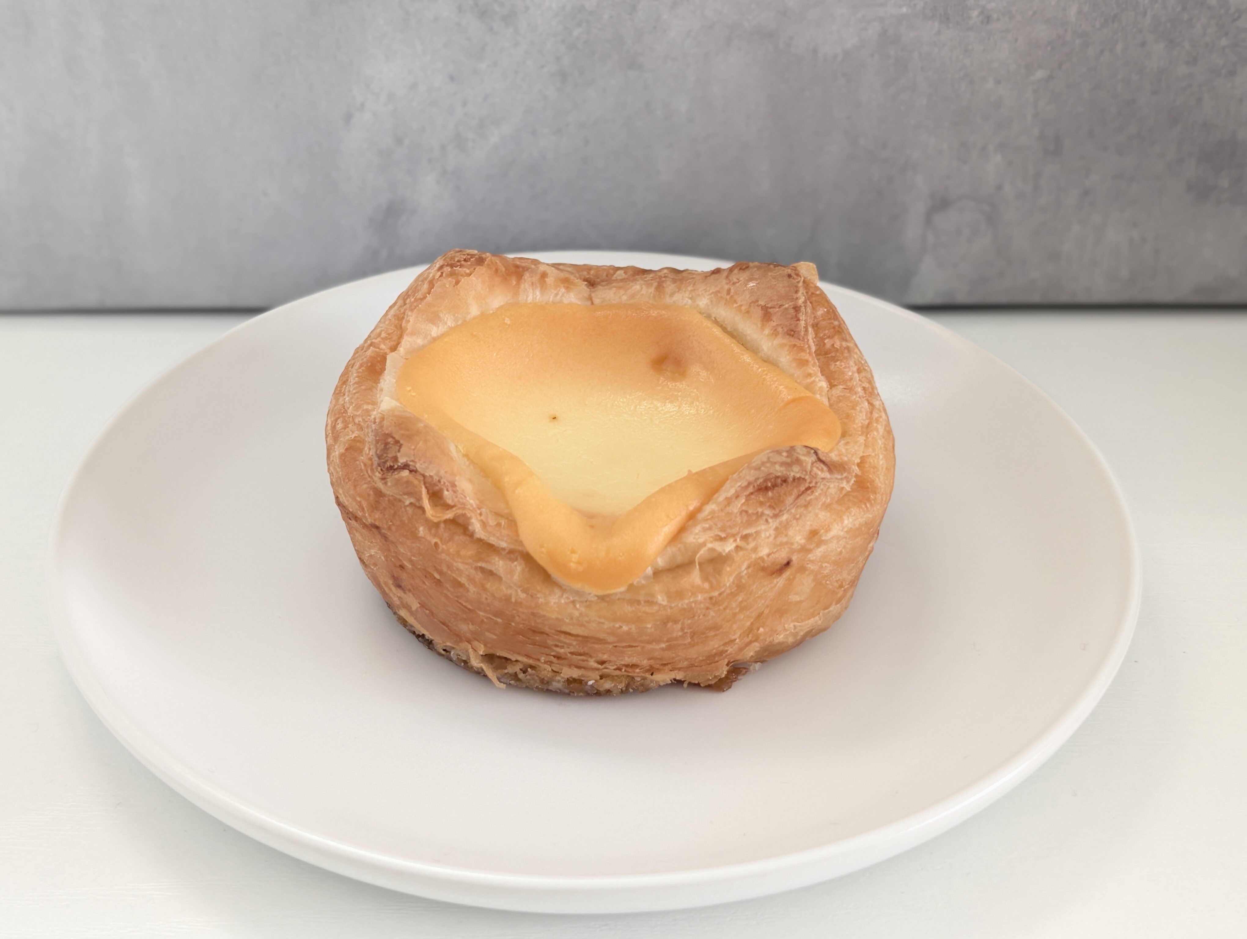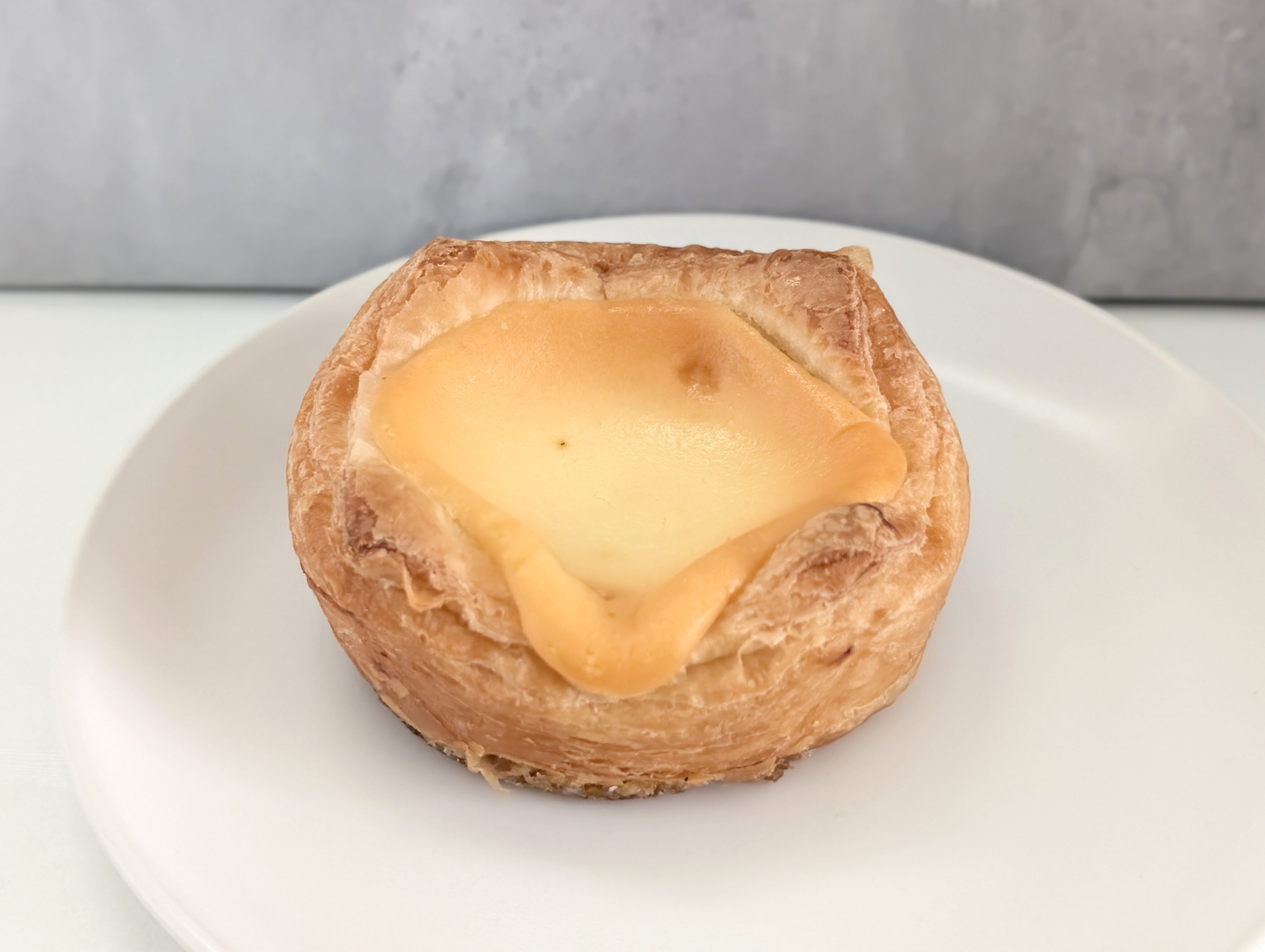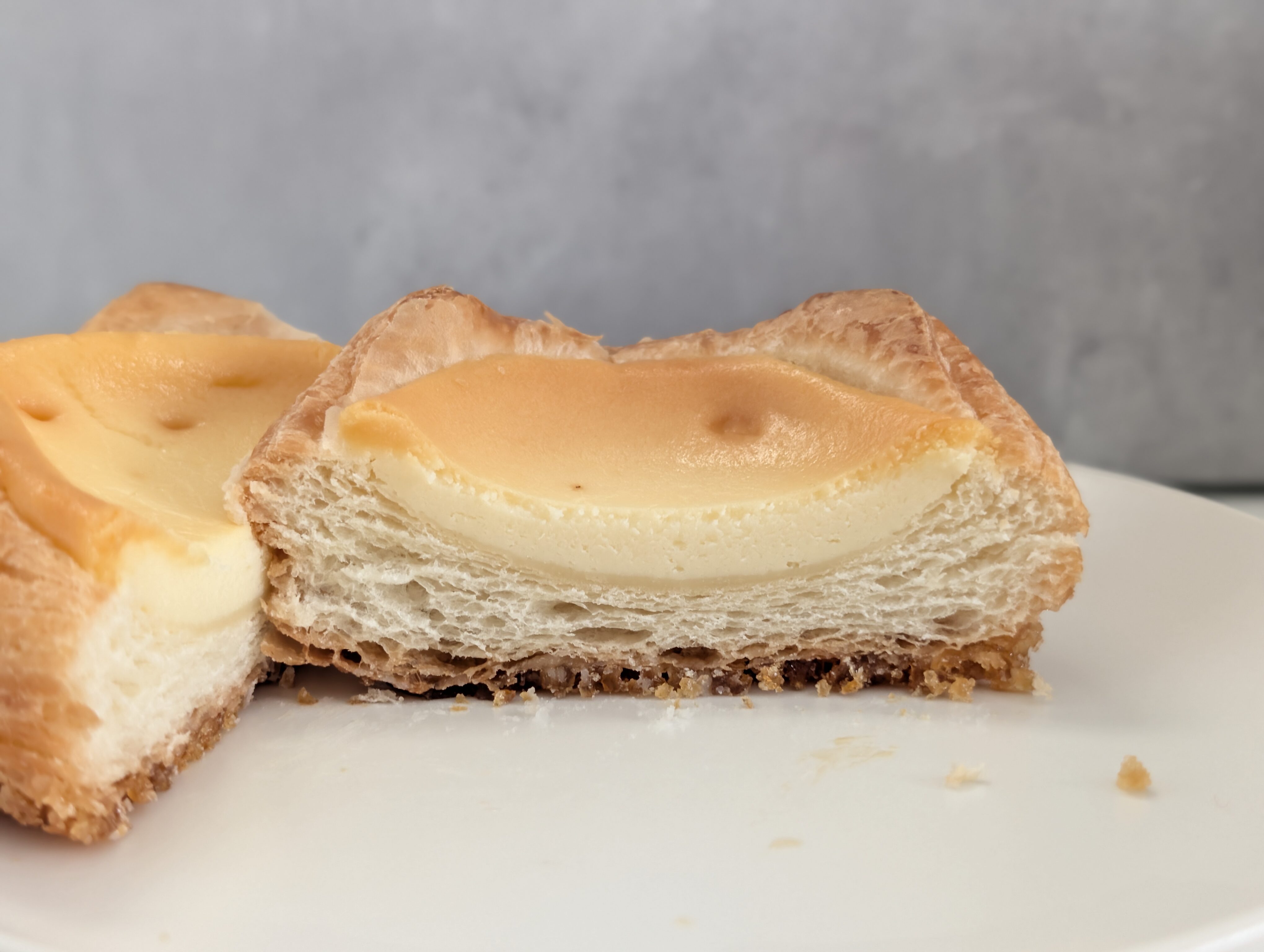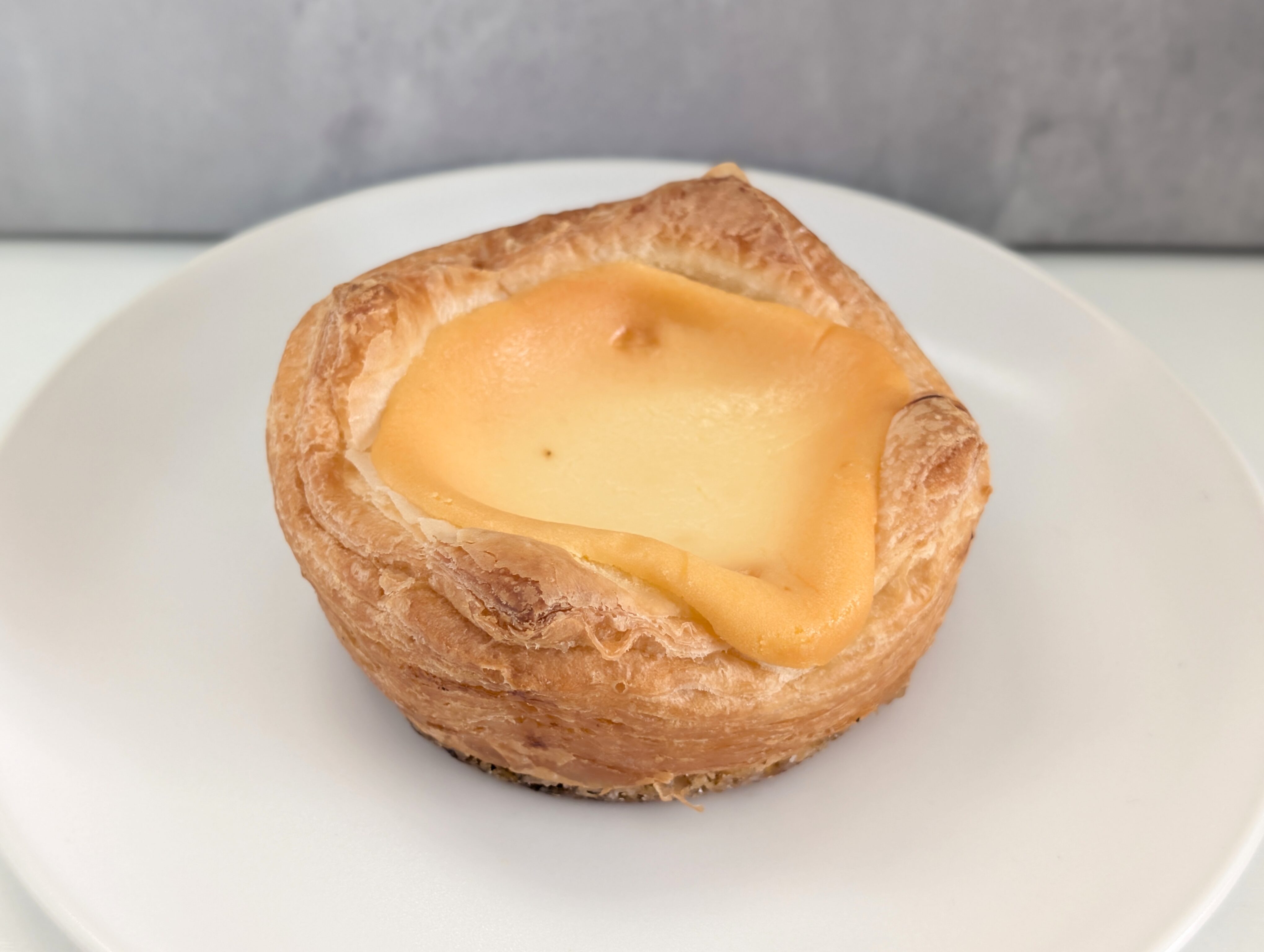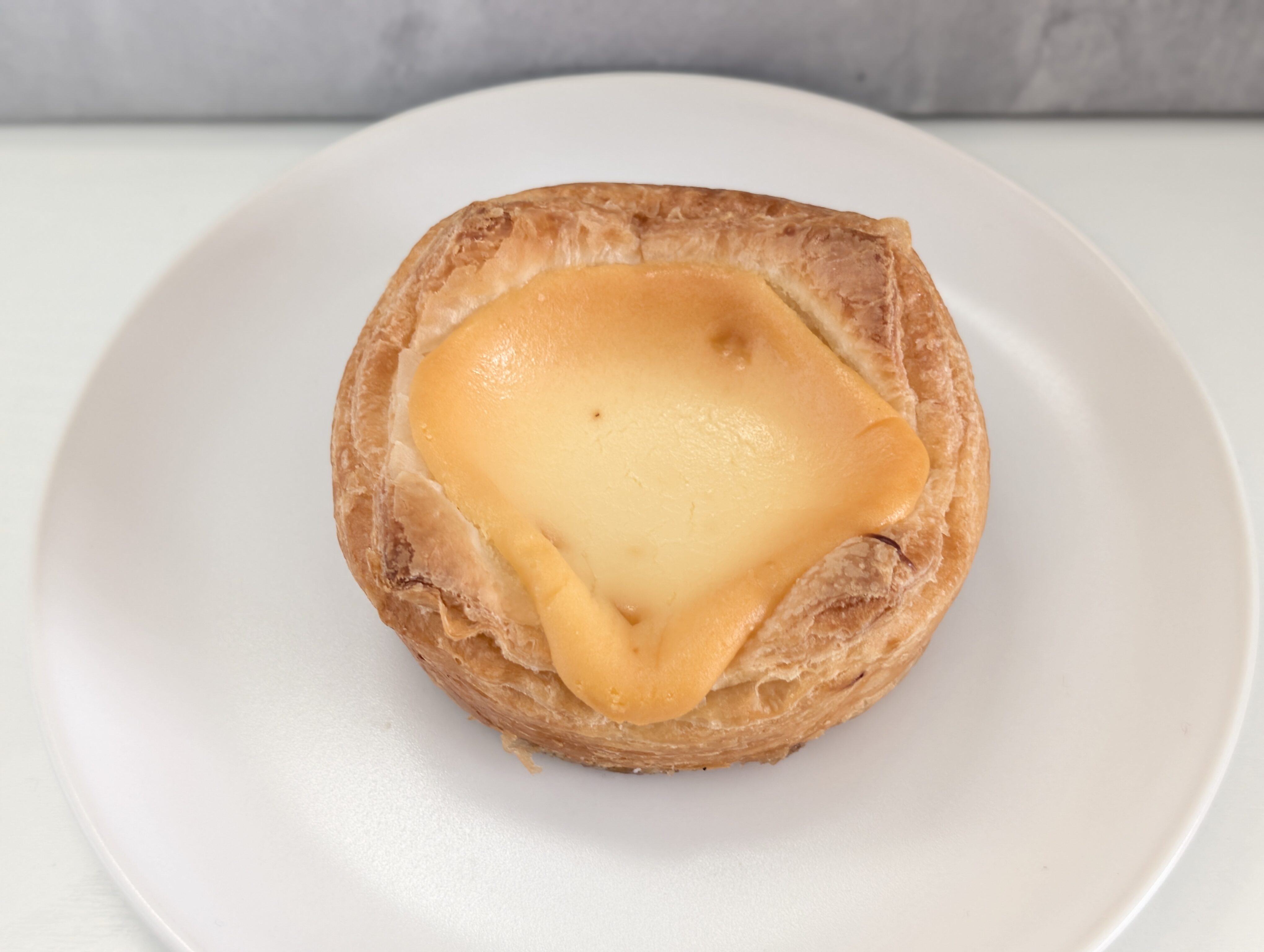 一見するとデニッシュパンにベイクドチーズケーキ風の生地をのせただけに見えます。