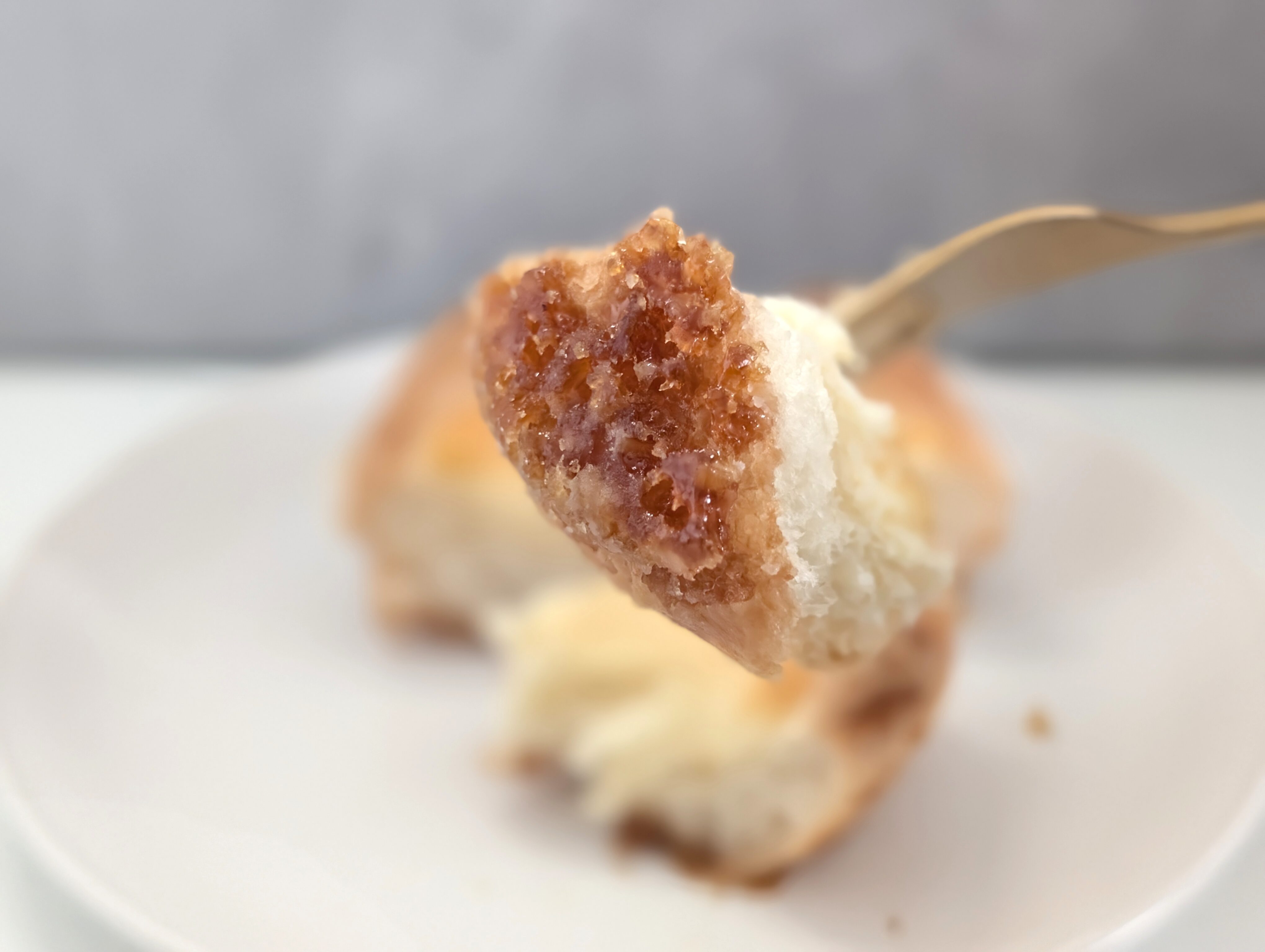 チーズデニッシュ、あるいはチーズケーキデニッシュといった商品は過去に何度か発売されたことがあります。今回はクイニーアマンの特徴であるキャラメリゼのザクザクした食感が加わりました。
