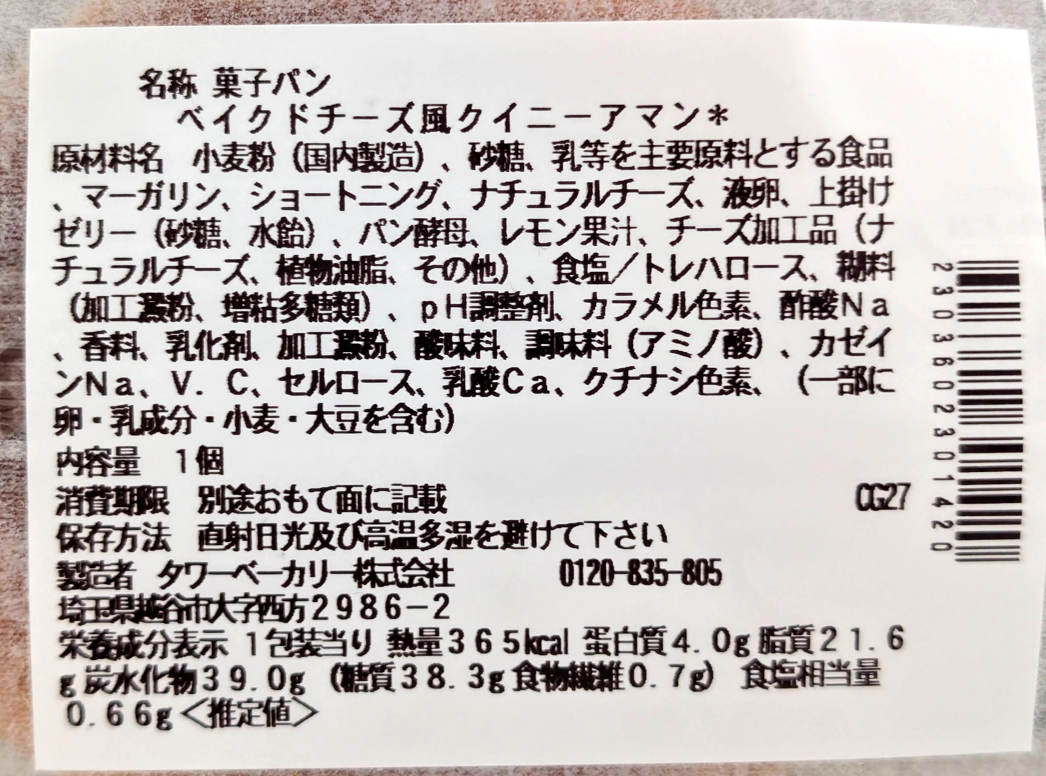 | 商品名 | ベイクドチーズ風クイニーアマン |