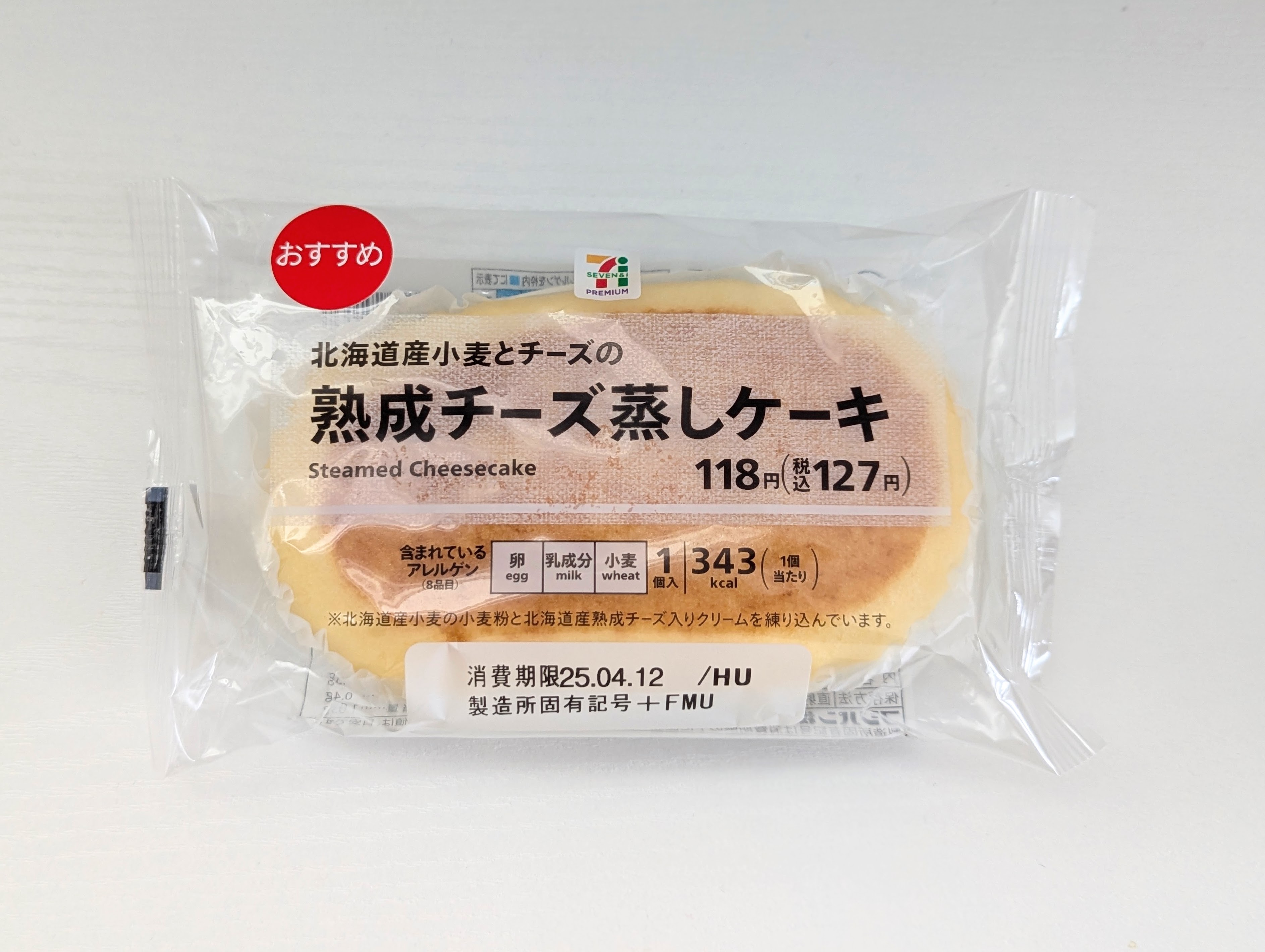 実際の商品はシンプルな蒸しケーキといった感じ。公式サイトによれば2025年04月08日から発売している商品で、チェダーチーズを使っているそうです。