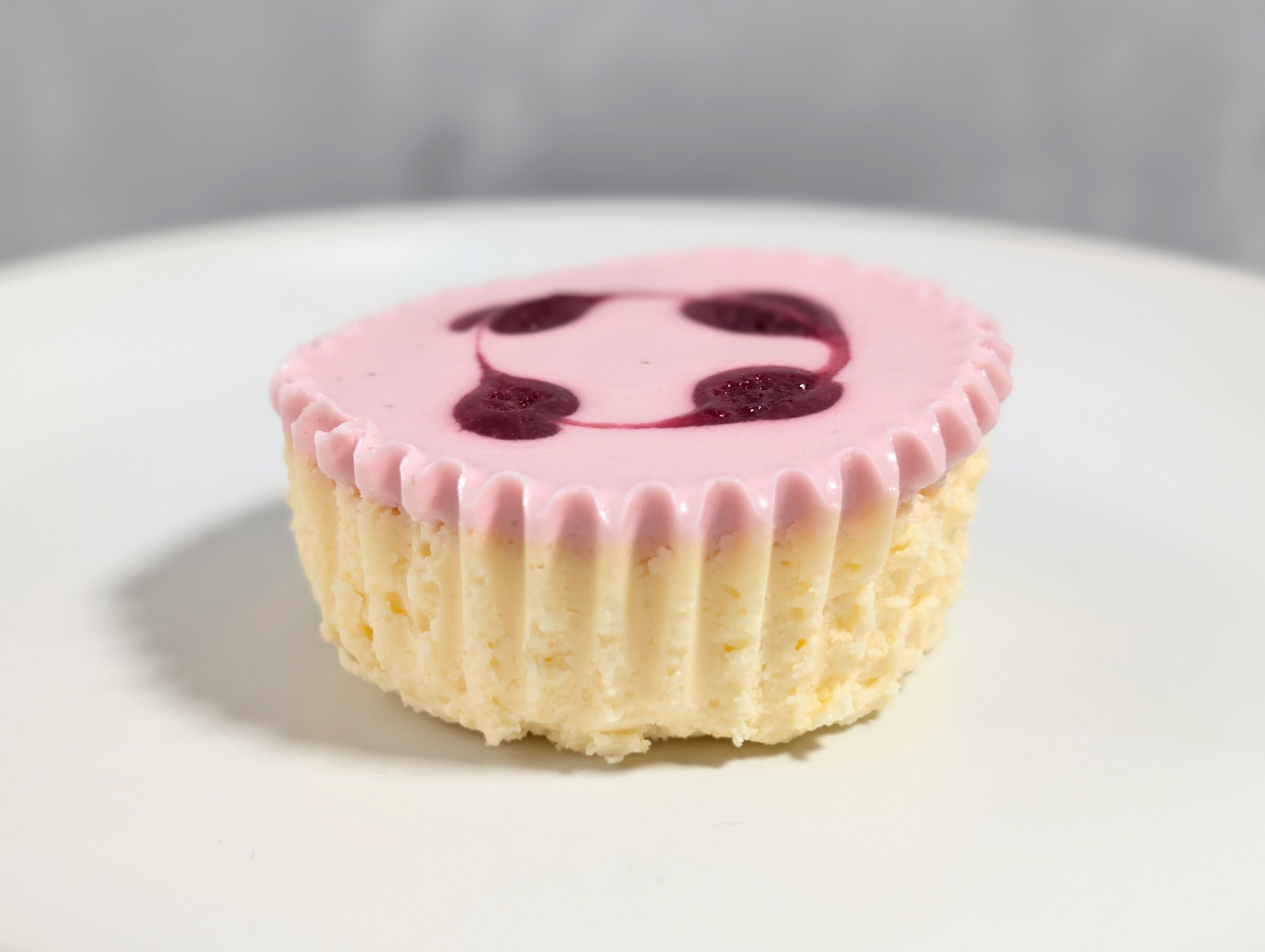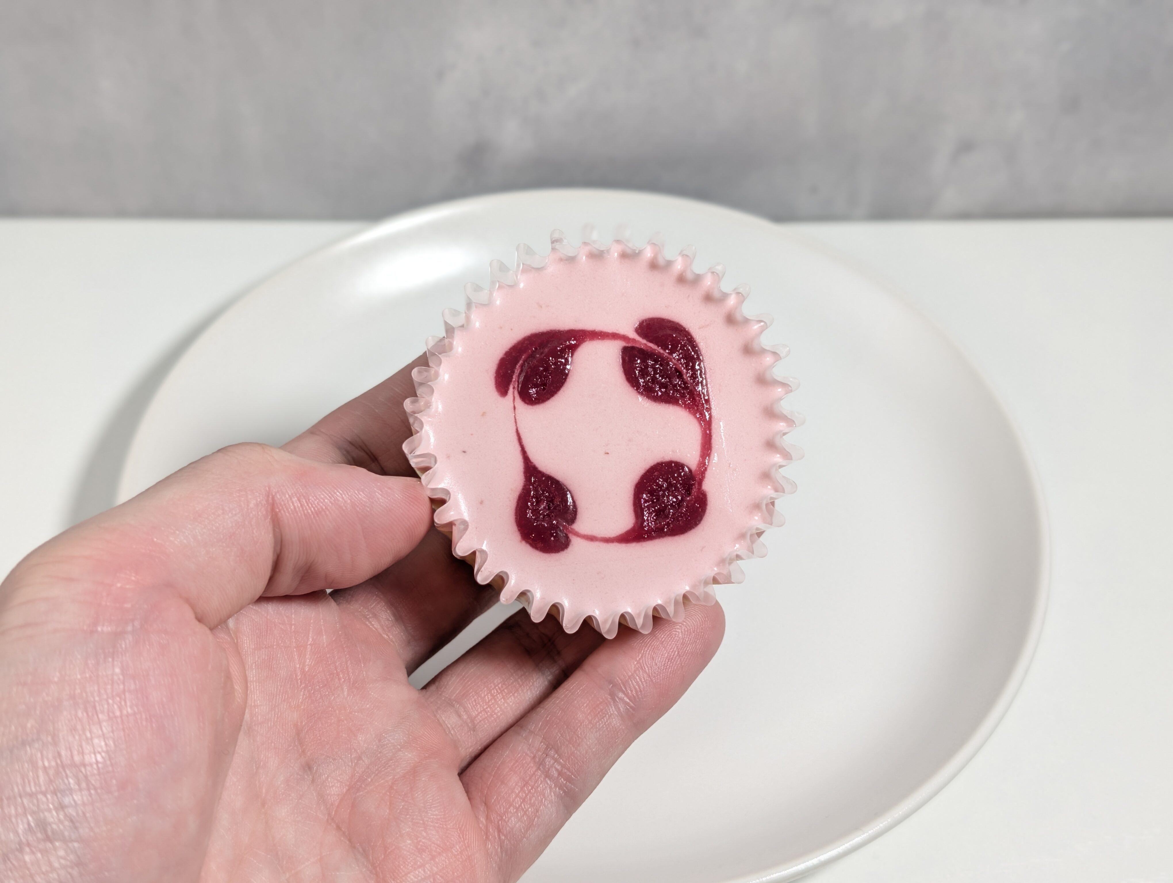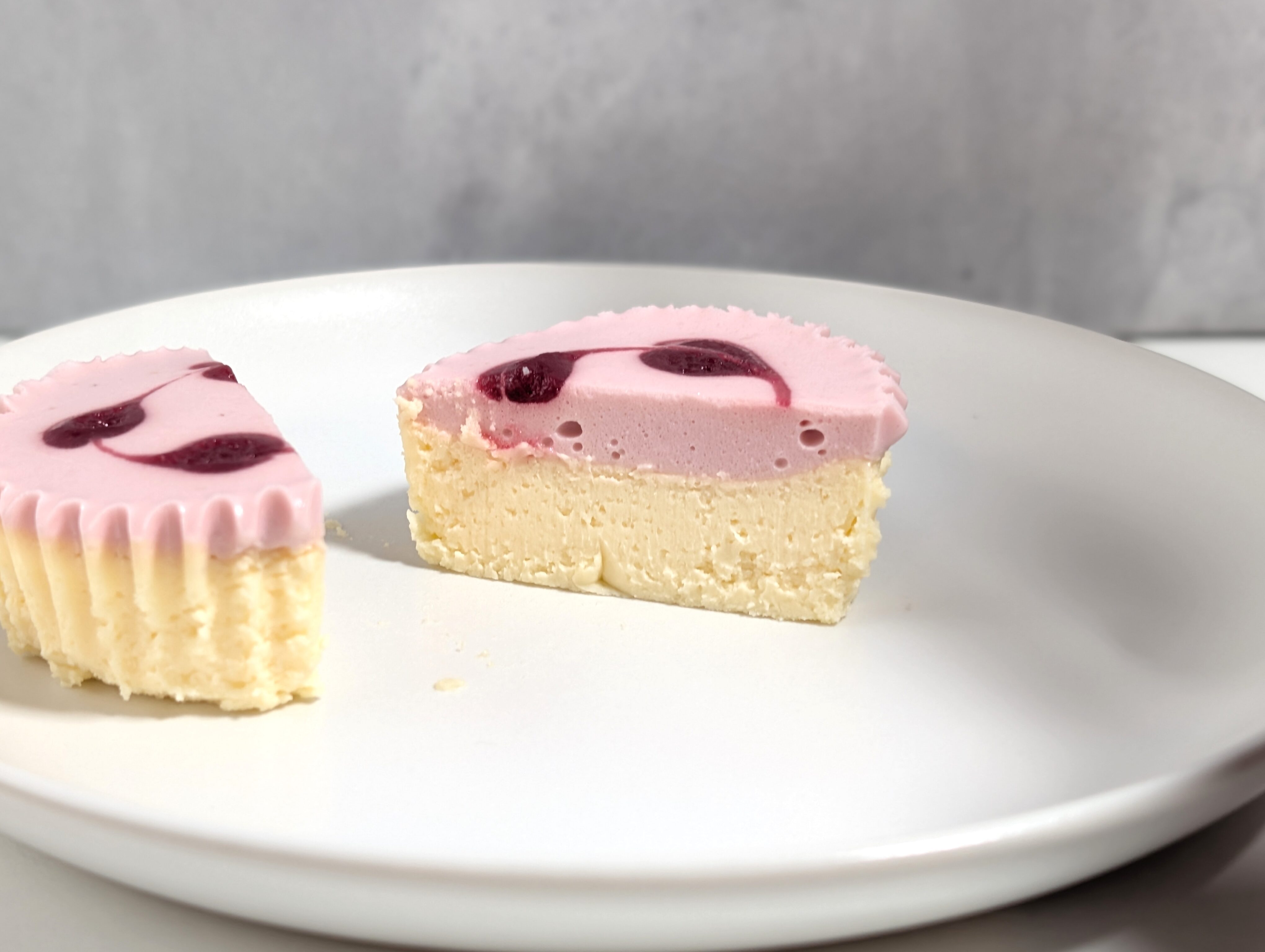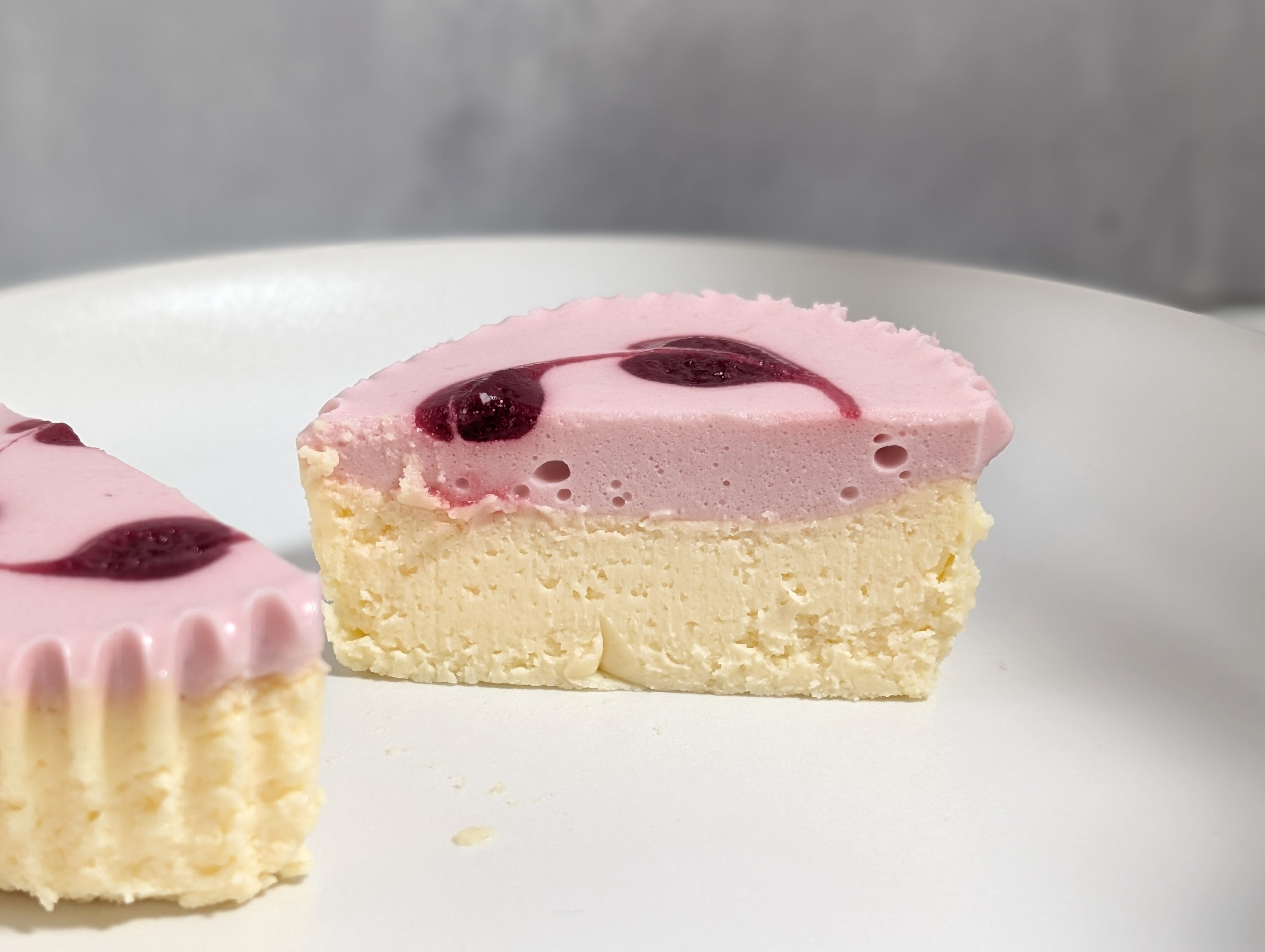 いちごフレーバーではありますが、いちごを全体に混ぜるのではなく、表面にいちごのレアチーズムースをのせる形となっています。このシリーズは底にクッキー生地を配置する商品も多くありますが、こちらはありません。