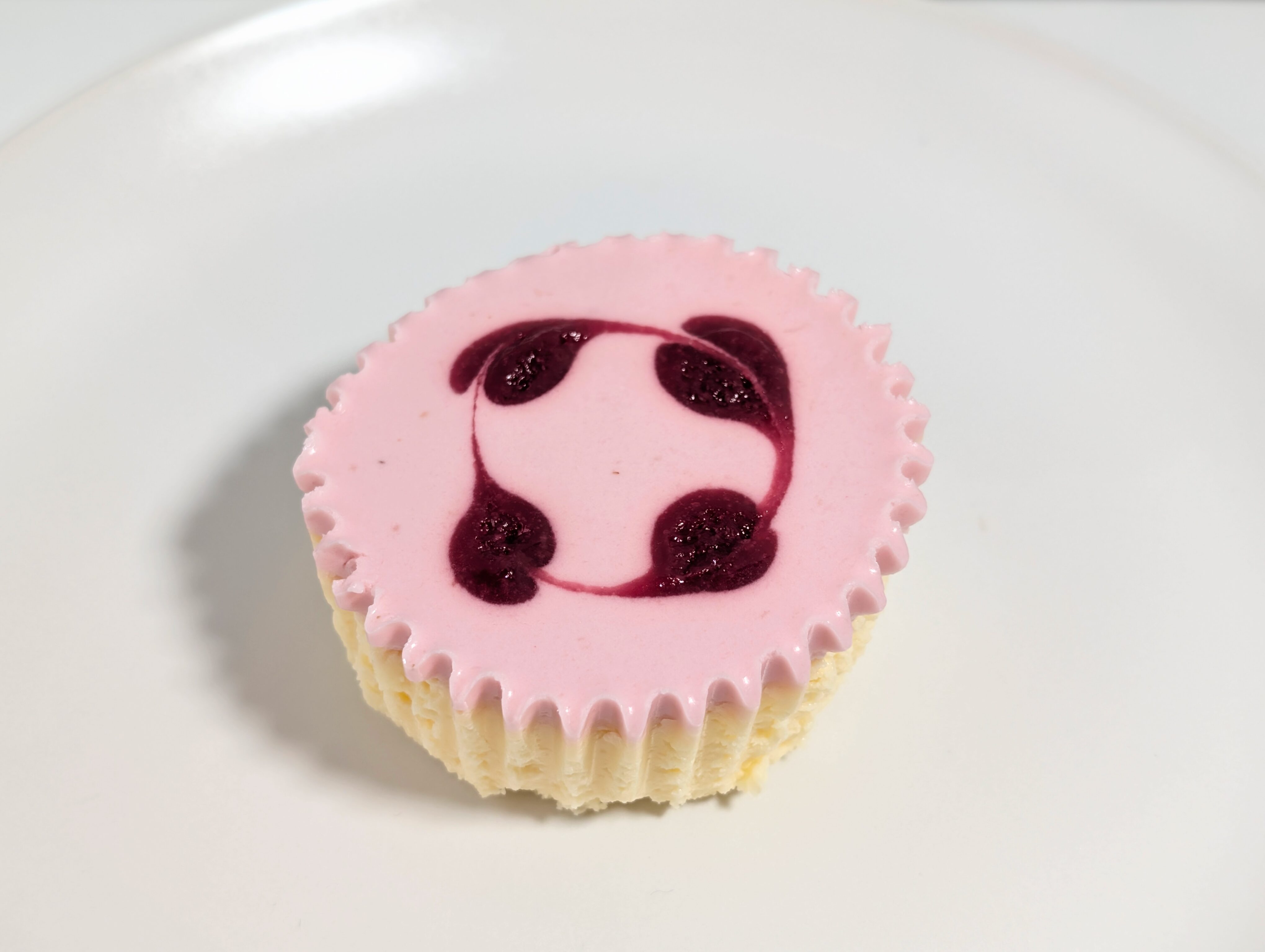 - 1層目(表面):いちごソースを配置したいちごのレアチーズムース