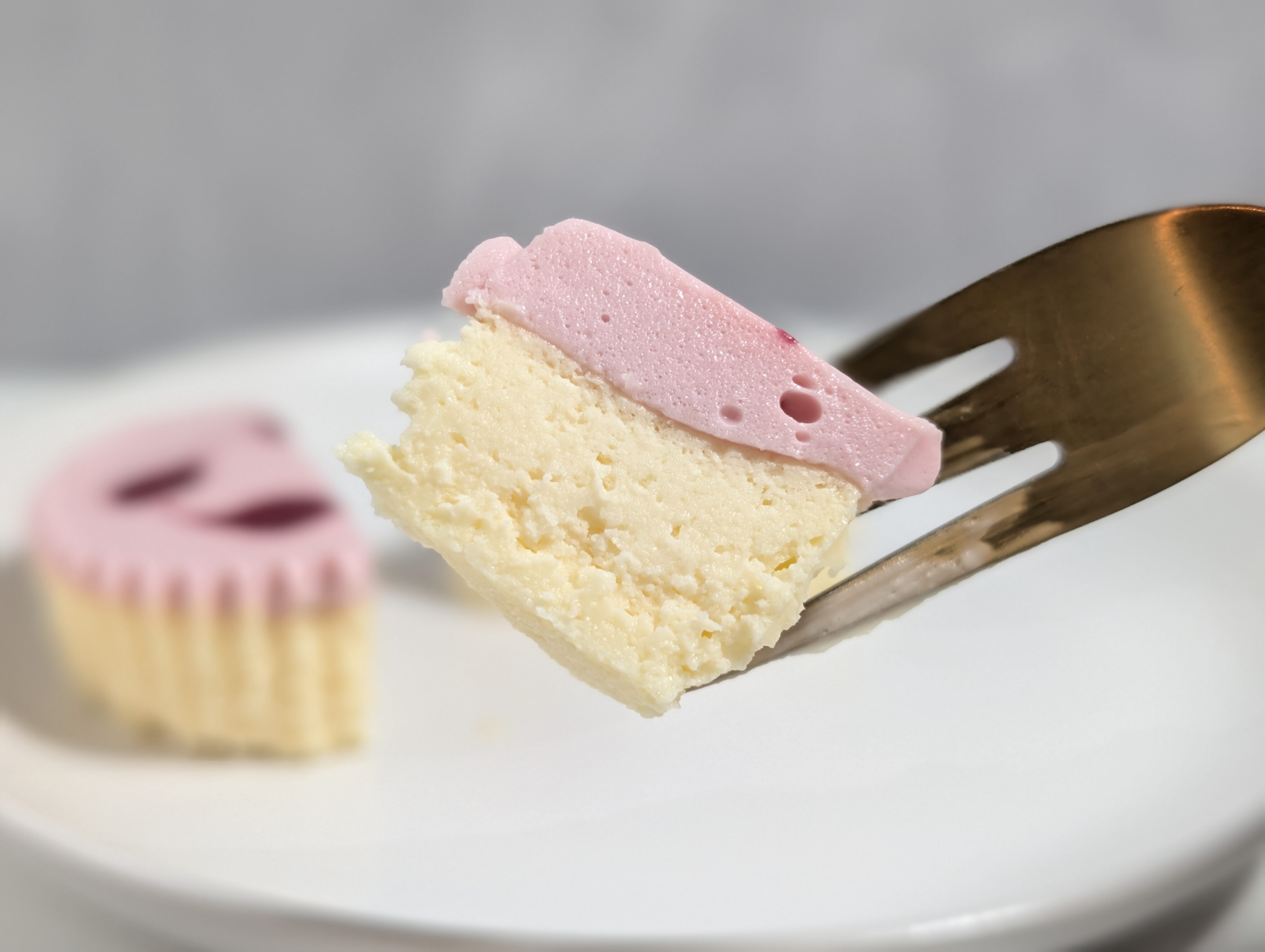 そして味ですが、濃厚なチーズケーキに特有のクリーミーでコクのある味の隙間から、いちごの風味がふわっと顔を出します。