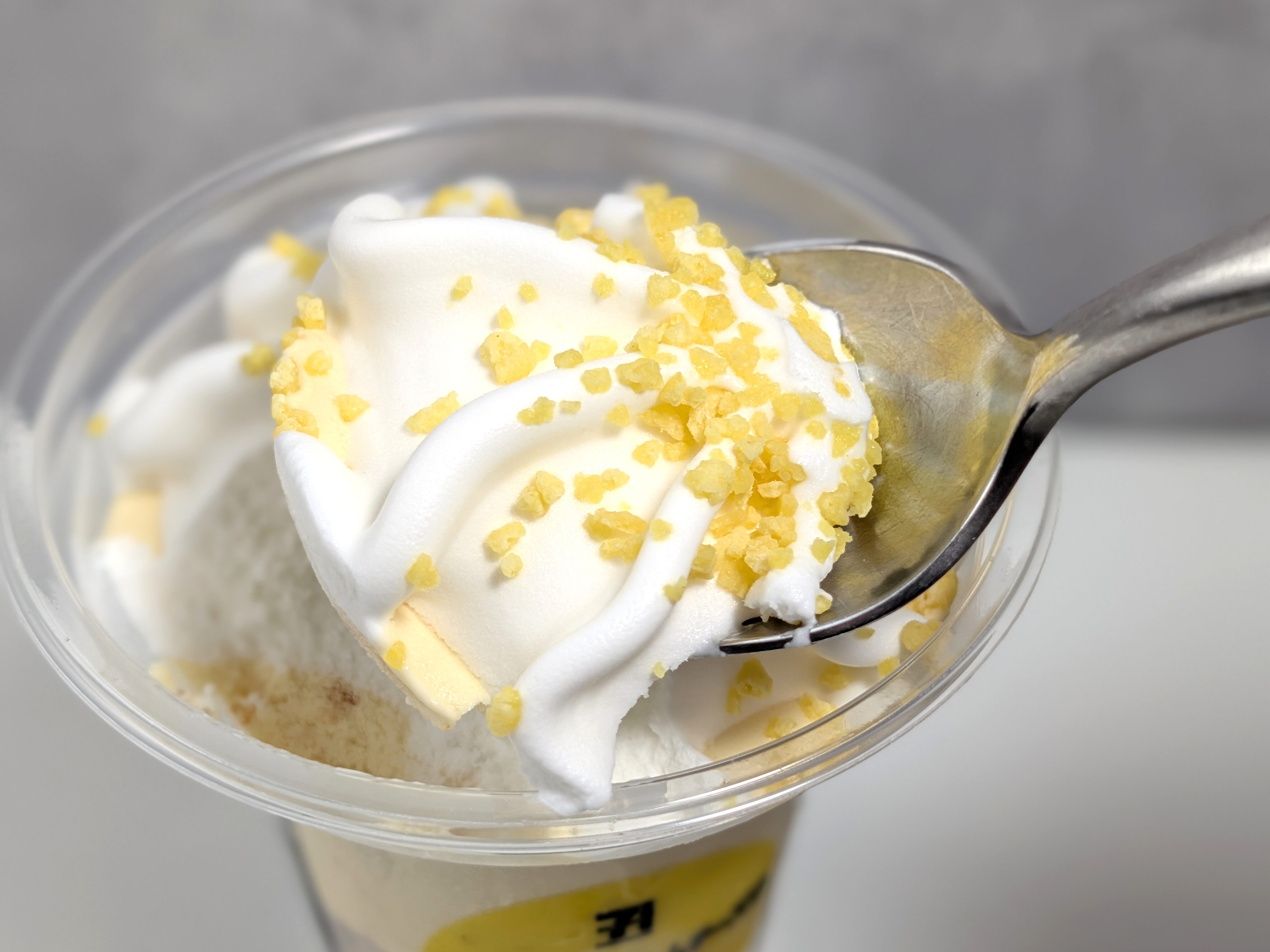 市販のチーズアイスの中には、アイスという温度帯からか、チーズの風味が弱いものもありますが、このパフェはチーズの味がしっかりと立っており、チーズスイーツマニアの私も満足できる濃厚さです。