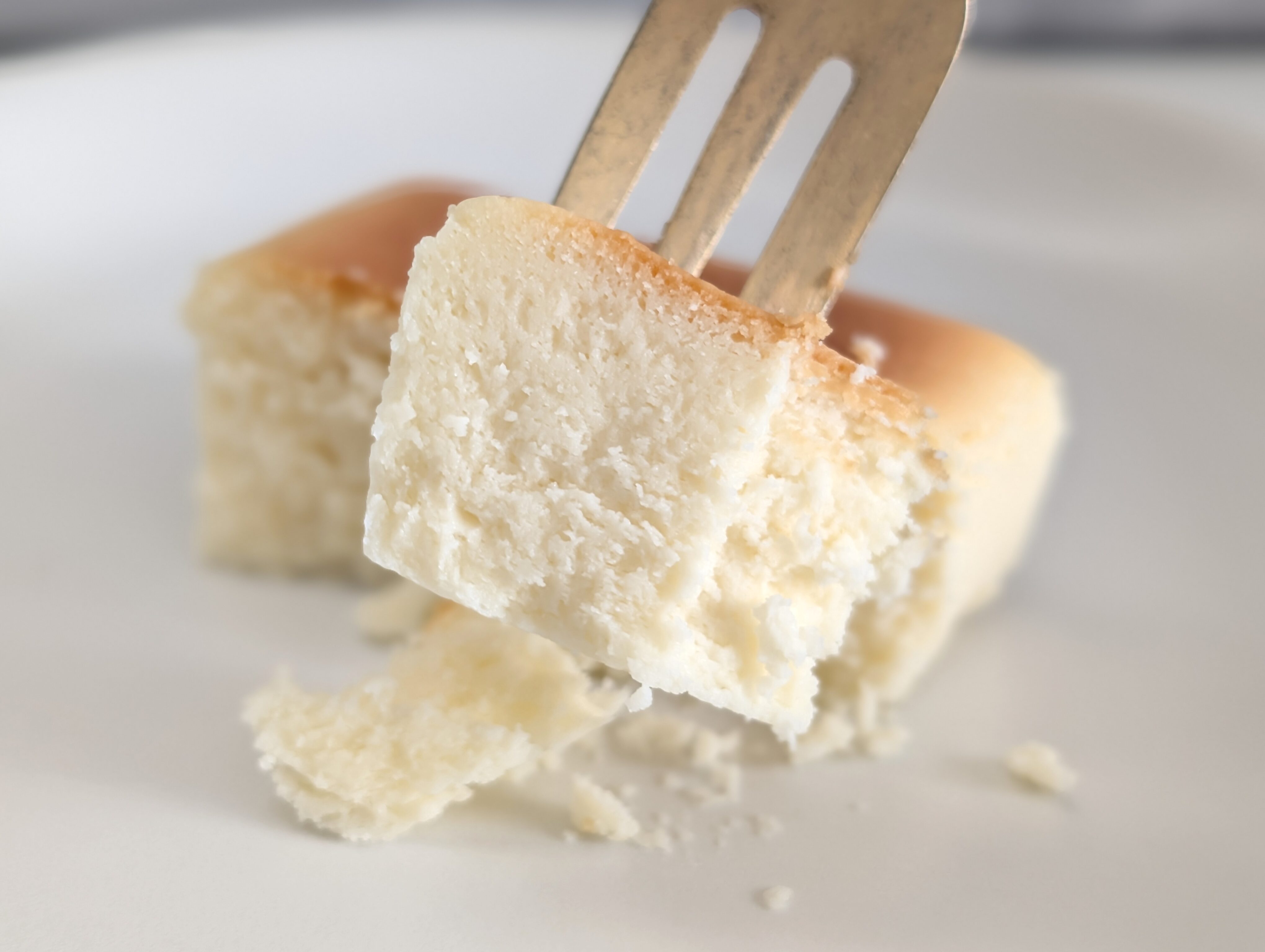 しっかりした硬めの質感ではありますが、口のなかでほろほろ崩れるような感じがあります。お手頃価格チーズケーキとしては申し分ないすっきりした食感です。