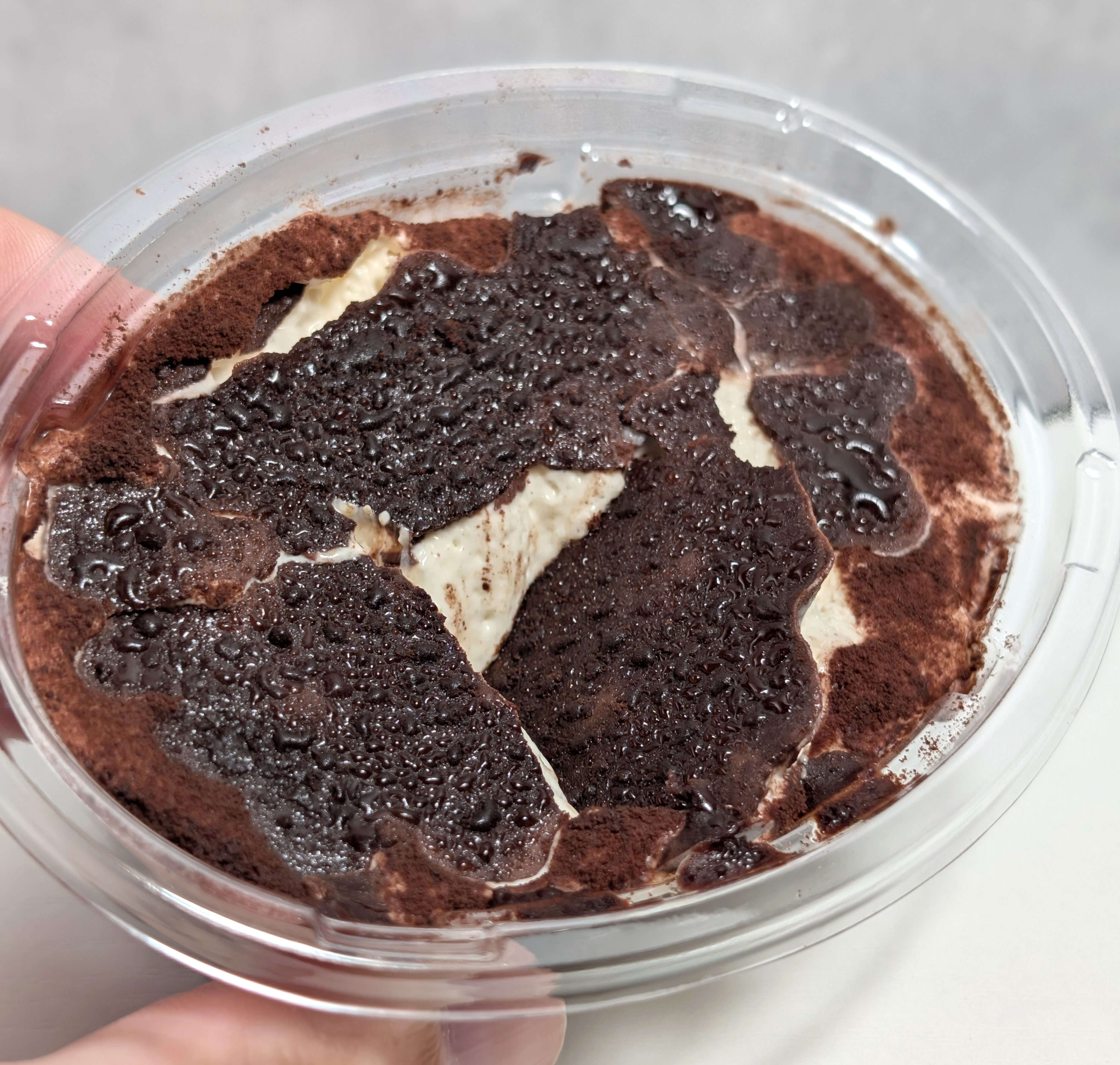 従来のティラミスにはないバリバリとした食感を楽しめる、ユニークなティラミスです。味についても約215円のティラミスとしては文句無しのクオリティでした。