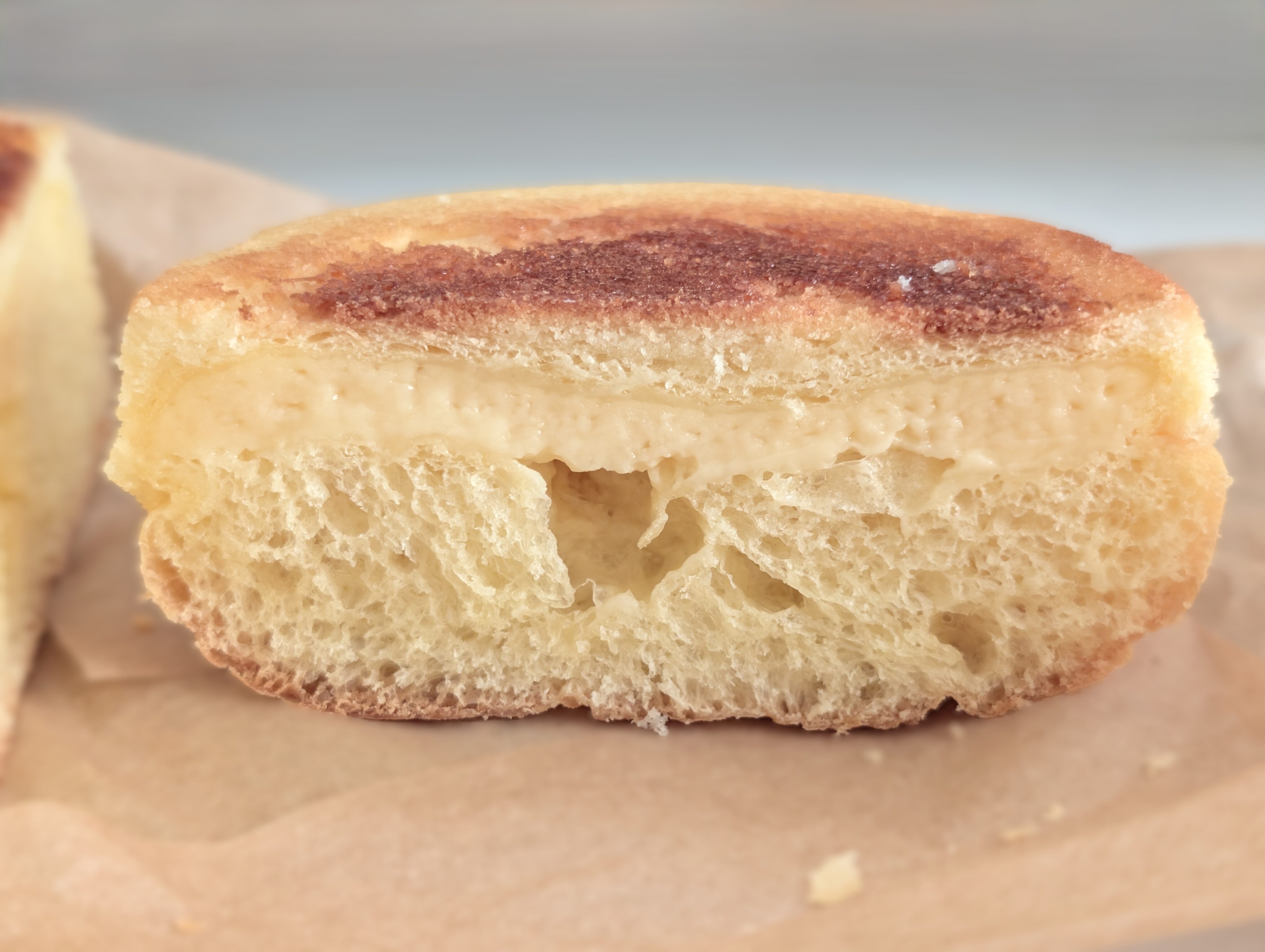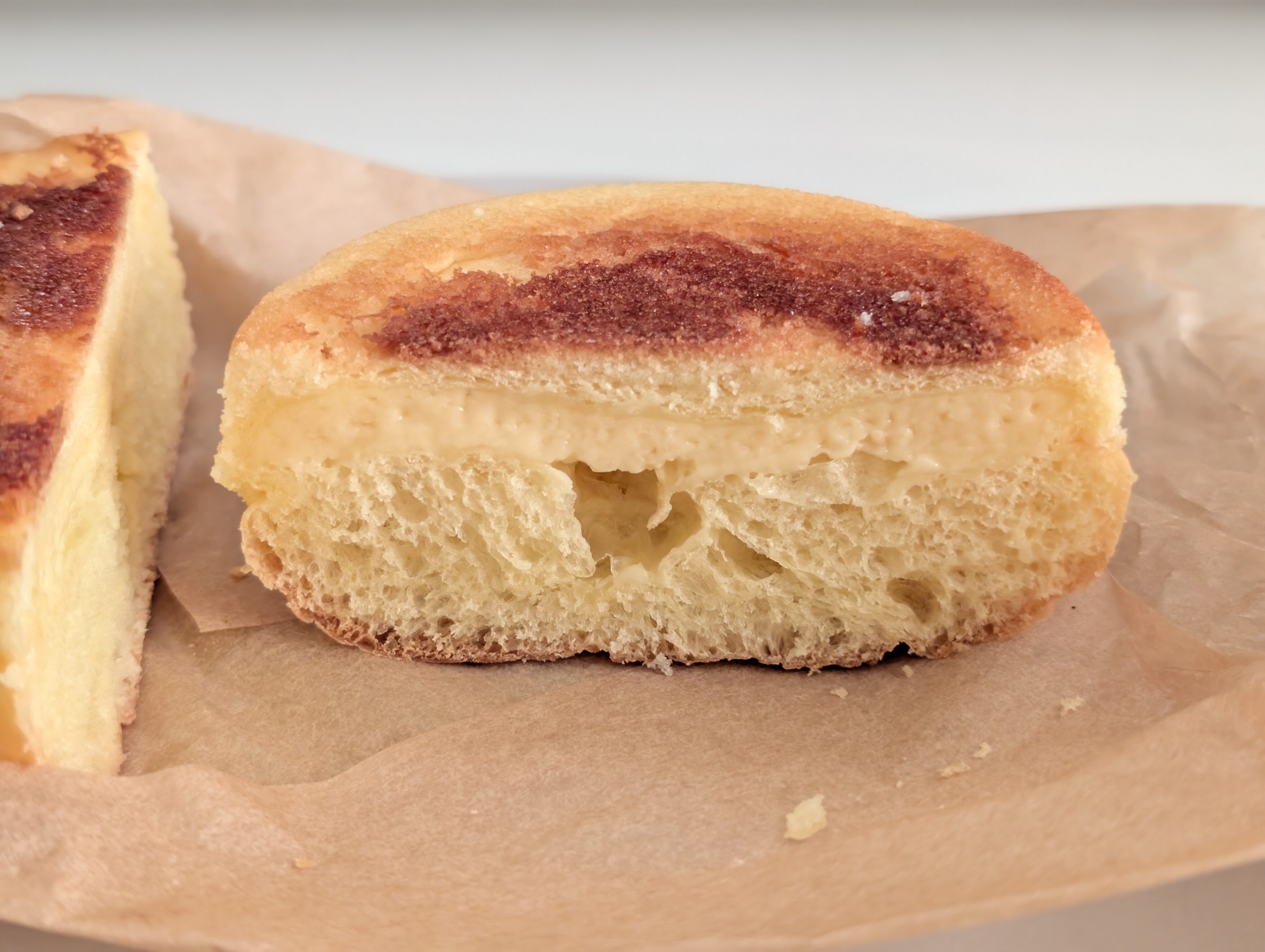 中心のチーズクリームは、やや「ぼってり」とした質感。クリームチーズ特有の、ミルキーでコクのある深い味わいがしっかりと感じられます。