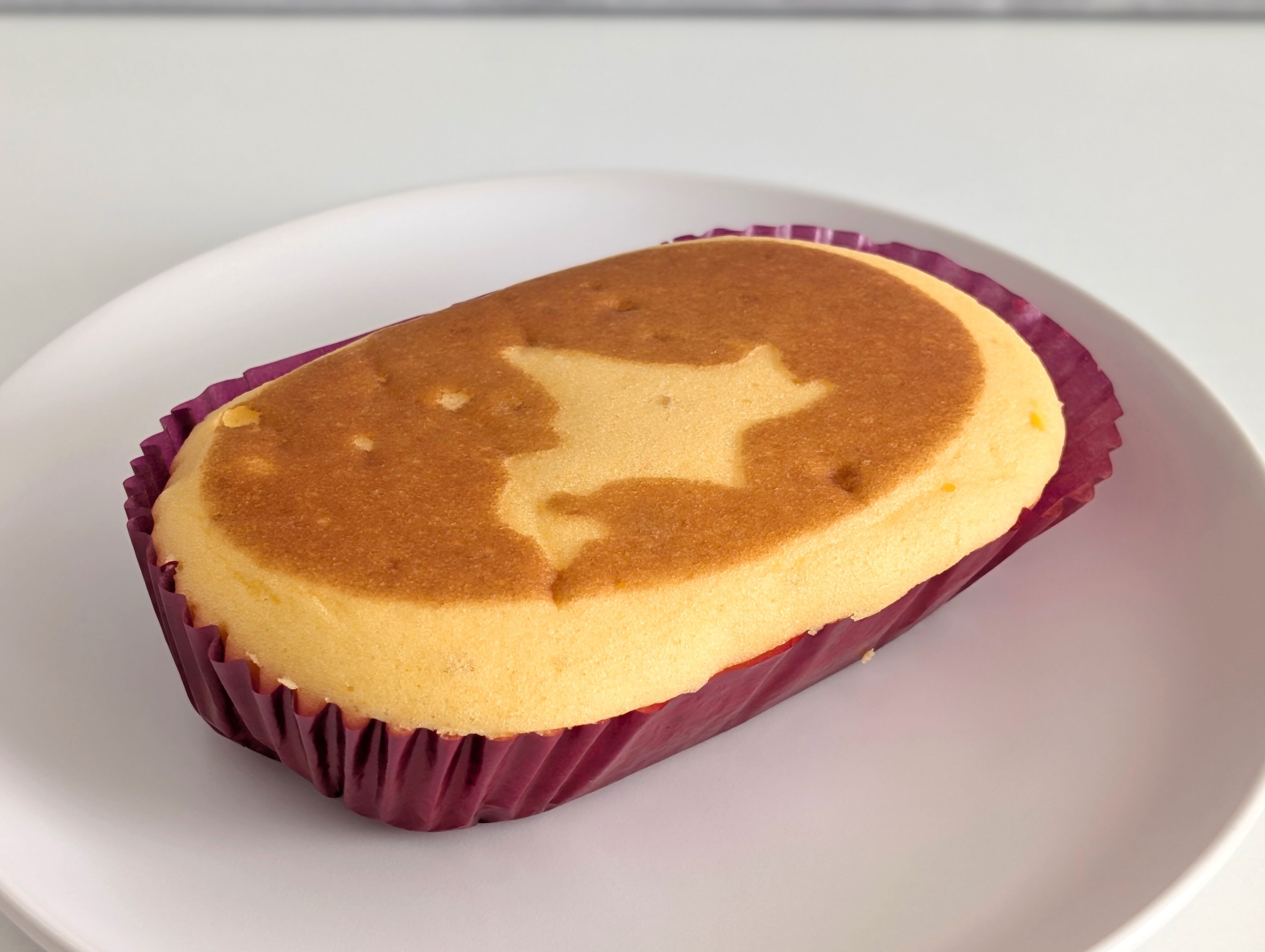 表面にはもちろん北海道のプリント。全体的には紅はるかを思わせる、温かみのある色をしています。本体はチェダーチーズ、そして紅はるかのペーストを使用しているとのこと。